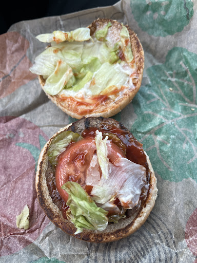 Burger King is Burger King, and you expect a certain level of service, etc.. when you go there. Normally, getting one of their burgers takes me back to my childhood. I had something in mind when I went today to get my order, I wanted that 6 dollar deal with the double bacon cheese burger, fries, and chicken fries. So that is what I ordered. She asked if I wanted spicey or normal chicken fries, which I responded spicey, it popped on on the drive-through screen, I asked for ranch, and that popped up. She gave me my price, and I pulled up and got my meal after a longer then normal wait. I drive the 6 minutes back to my work location and pull e everything out of the bag... the fries were there and fine. Everything else was wrong. Sweet and sour instead of ranch cups, normal chicken fries instead of spicey, and the real slap in the face was the burger. My double bacon cheese burger was a bun, two meat patties, and nothing else. No onions, mustard, ketchup, cheese, or bacon... Unfortunately, I don't have time to drive back here, nor am I sure I even have a receipt. Sad...
