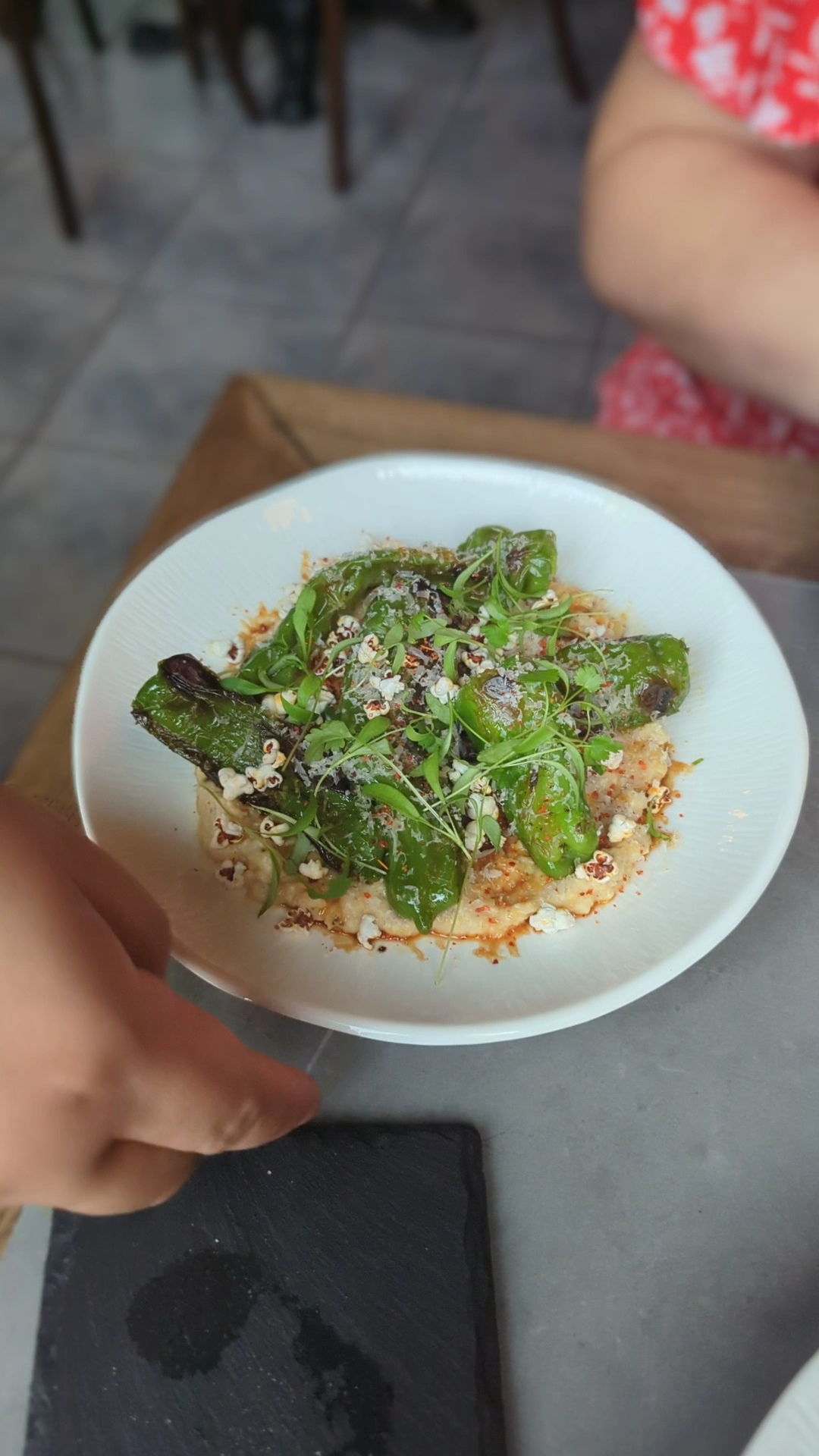 Shisito peppers 4 stars I absolutely love shisito peppers. These were prepared grilled, over top of a polenta mix. I wasn't really a fan of the polenta though. It was interesting but not something I would order again since that's the other half of the dish. I did very much enjoy the peppers though which is why this still gets a 4 and not lower.