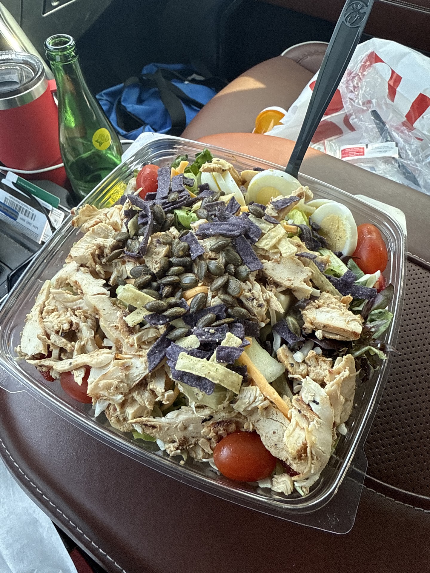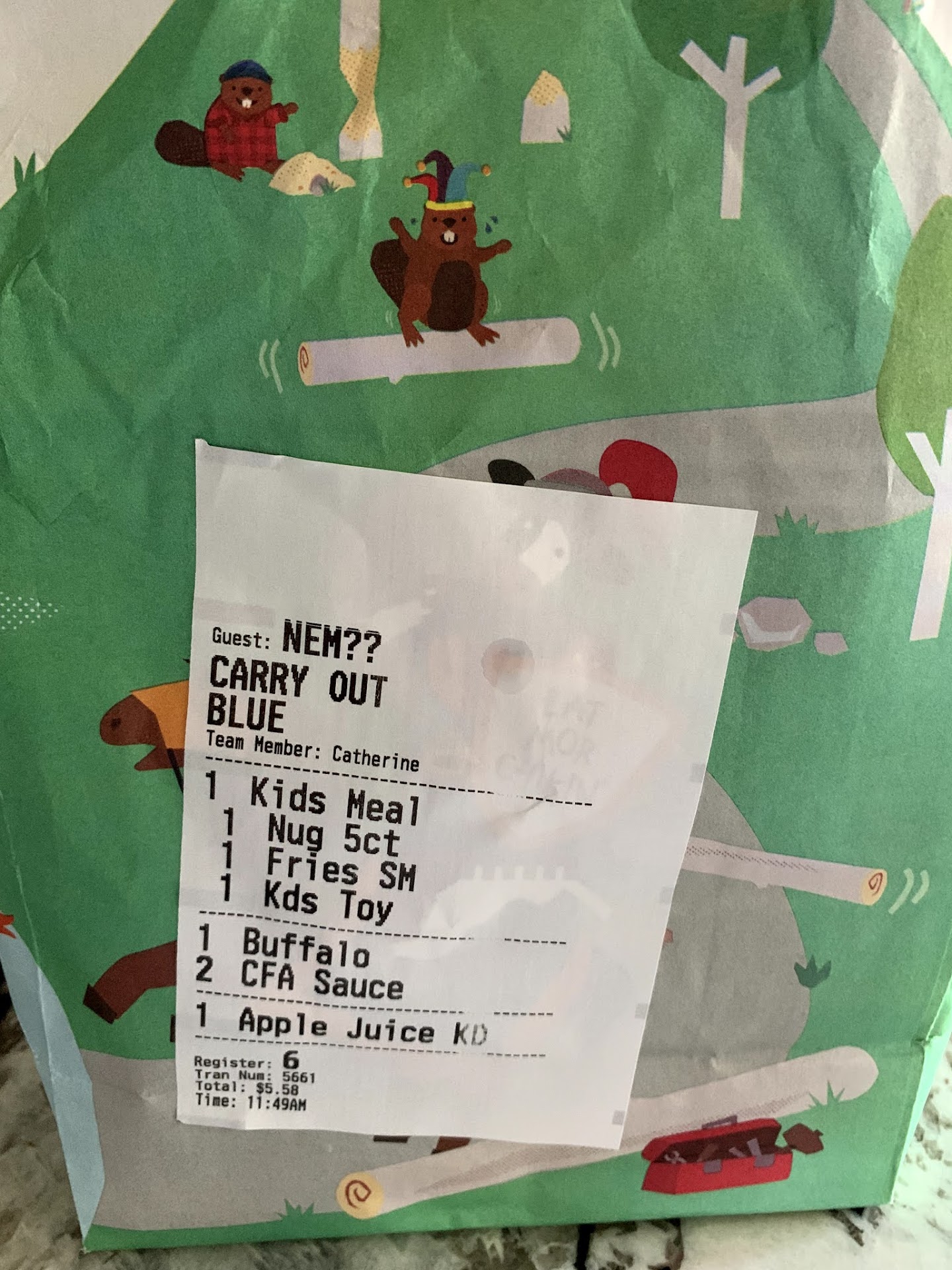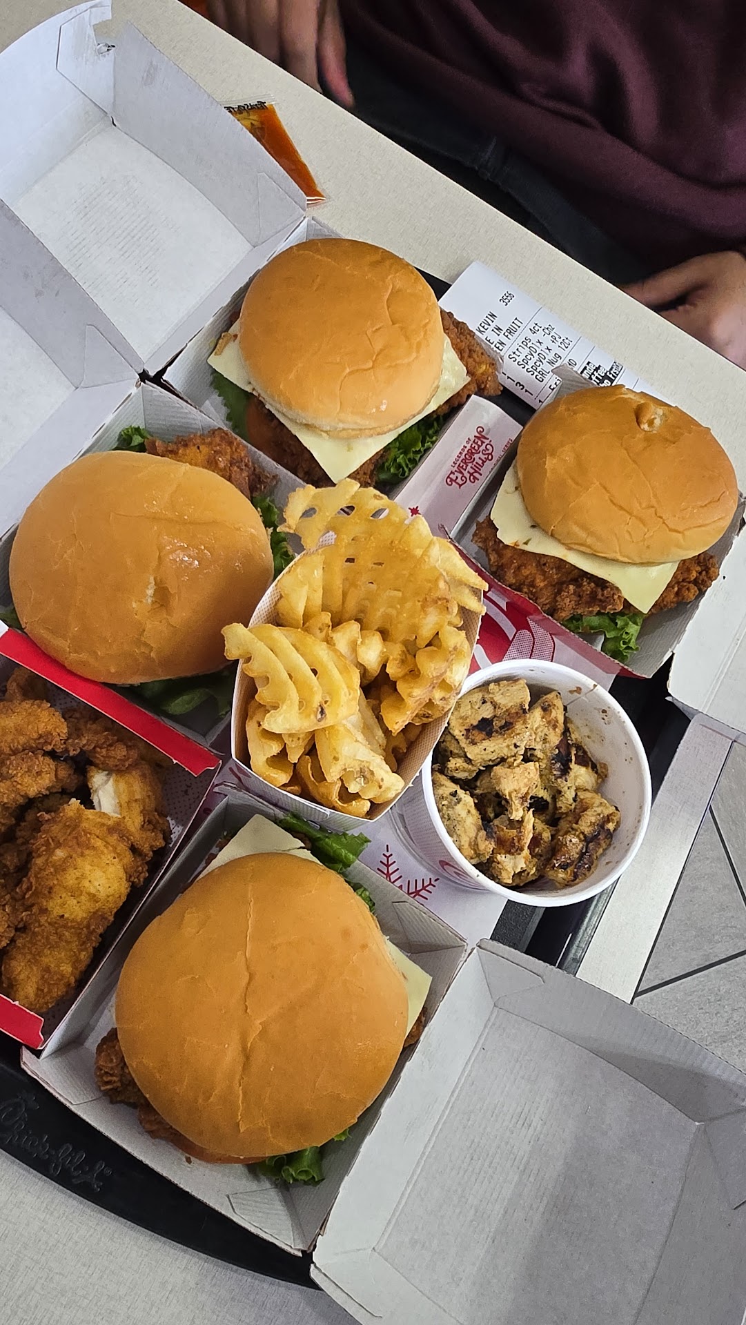 I would have given 4 stars if not for the very, very young employees (I.e. those with the attention span and serving skills of a gnat) and chick-fil-a's "white line" waiting design. My dining companion wanted to go there even though I had serious doubts they had a vegetarian main meal option. At the drive through I asked if they had any vegetarian selections besides their side salads and fruit cup. At first no, then maybe (regular wrap without the chicken), then yes. They would make a veggie wrap for me. Huge kudos to them for accommodating me and not losing an order. Wrap was fresh and decent and included lettuce, cabbage, tomato, corn, black beans and cheese. They did not ask if I wanted dressing with the wrap so I requested one. For on the fly, I most certainly give them credit for their effort to keep a customer. My dining companion ordered chicken strips (which was good according to her) as a meal and again we were not asked about dipping sauces which I forgot to request. At the window it was nearly impossible to get anyone's attention. Finally, a girl who had a headset on and was clearly taking drive through orders saw me waving and added my request for dipping sauce. Here's the issue, there were 3 kids watching to see if orders were being fulfilled (looked like they were standing observing paper bags being filled), another filling drink orders, a manager who looked like she had had enough, plus a plethora of others serving at the inside counter. I was told to move to the "white line" which is still "in line" because my order wasn't ready (I also had to remind the young boy that we hadn't received our drink yet). Fair enough. They bring me the order which is incomplete but I'm unable to catch the girl who dropped it off because she handed it to me and said "you're welcome" and was gone before I even had a solid grip on the bag. I stay on the white line assuming people can pass around me otherwise why have it designed that way and go back in to get the order corrected. Max time maybe 1 min. I come out, get in my car, start driving to get honked at from people in line. Clearly their "white line" design doesn't work (or maybe not plowed sufficiently) but the impatient honkers got additional bird from me to add to their...