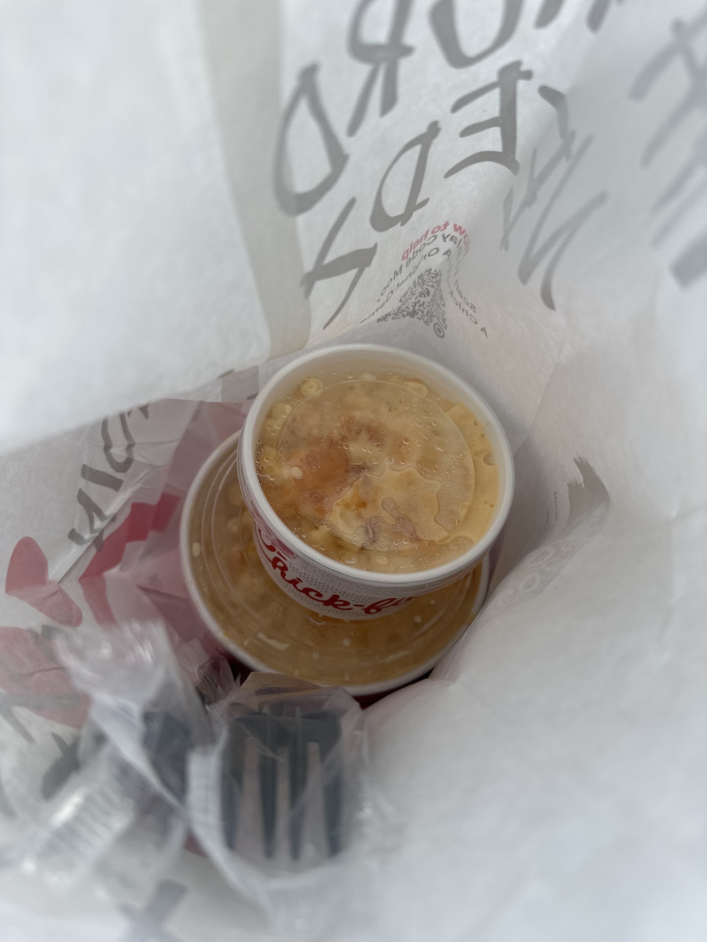 Even though we thought that was the worst of it, we tried a few fries on our way home and they tasted old. Like, 3AM going through the drive thru at a 24-hour McDonald’s old. The drink he got was half-full with ice, the produce on his sandwich was like the bottom of the tin, and the chicken patty was the smallest he’s ever gotten and was overshadowed by the bun.