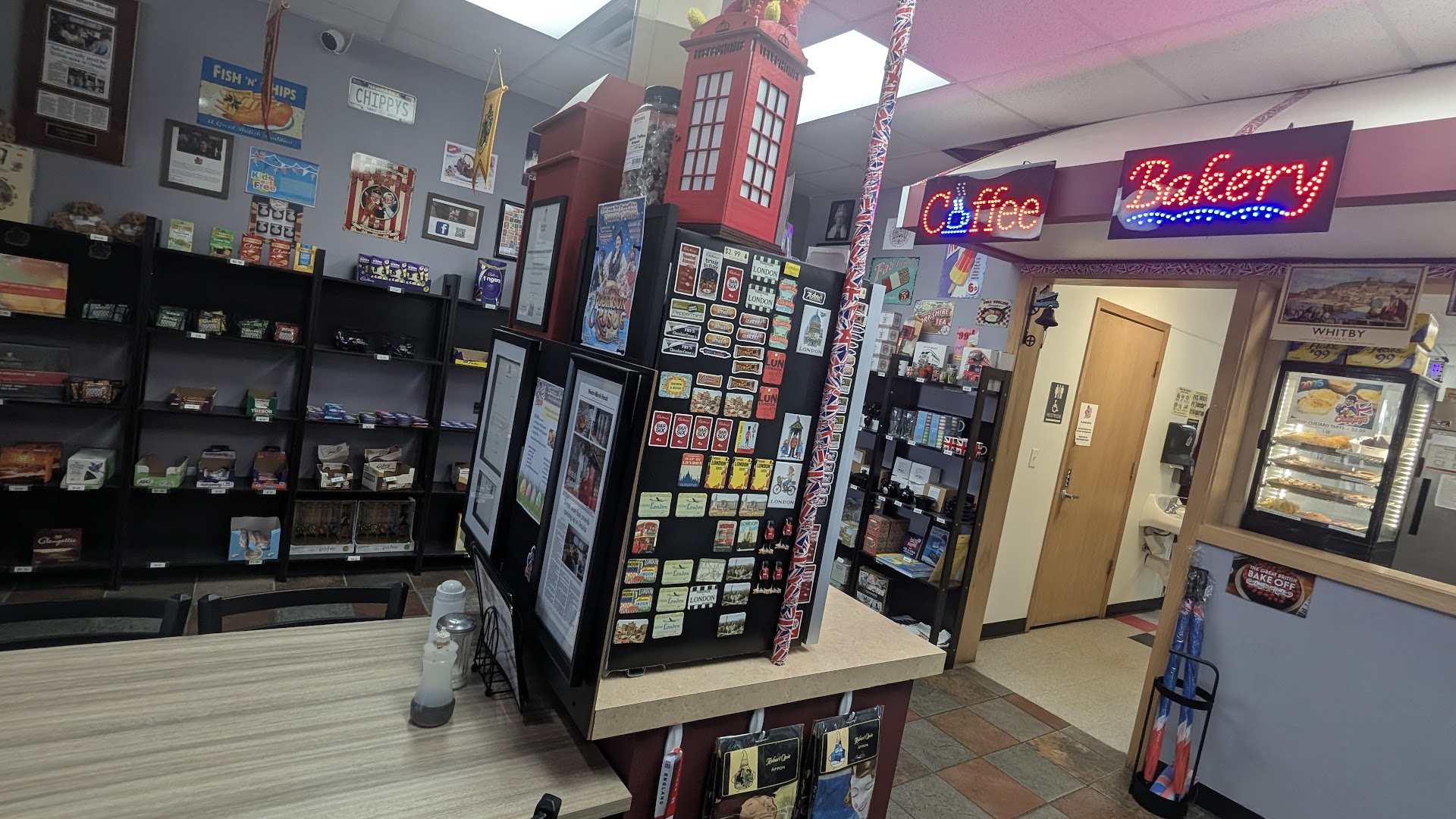 PROS: Atmosphere. Such a cute little place with lots to look at! It's a tiny place with 2 tables in the middle together & tons of stuff from the U.K. for decor & purchase. I talked to one of the regulars by chance who said you can sign up for a newsletter that tells you what new stuff is going to be coming in. There's candy, loose packaged tea bags & boxes, savory items, non-food novelties. There's also a British t.v. on. You will pay a premium for them being imports.
