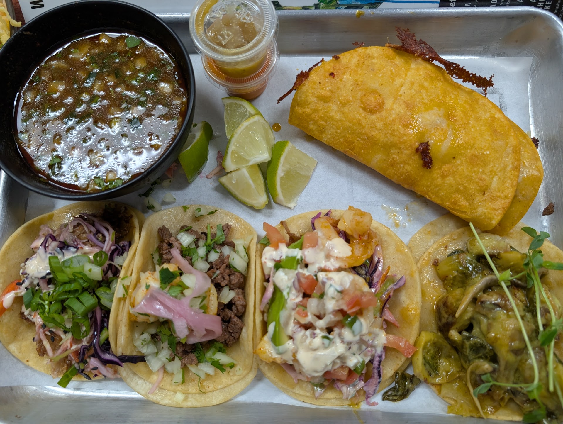 Came in a couple of weeks ago to try this new place out and it didn't disappoint! The food here is made with high quality ingredients prepared by people who know how to execute properly. The menu selection is not very large even during brunch on Sundays but all items we ordered were delicious! The loaded mac and cheese was served piping hot with a super creamy cheese sauce and plenty of chicken and bacon. The rigatoni was a great noodle to use here and made getting every drop of sauce from the bowl easier. They offered a chorizo hash with eggs and it was delicious and spicy. The egss were cooked perfectly as were the potatoes and the chorizo was spicy and delicious. Ordered the Korean pork taco as well as their quesa-birria taco and found both to be delicious. The quality of the ingredients really shines in everything they make here and the price reflects that but it is still well worth it for the great flavor all these items have. Of your looking for a locally owned mom and pop shop cranking out the a great mix of Asian/Mexican cuisine, you have to come to...
