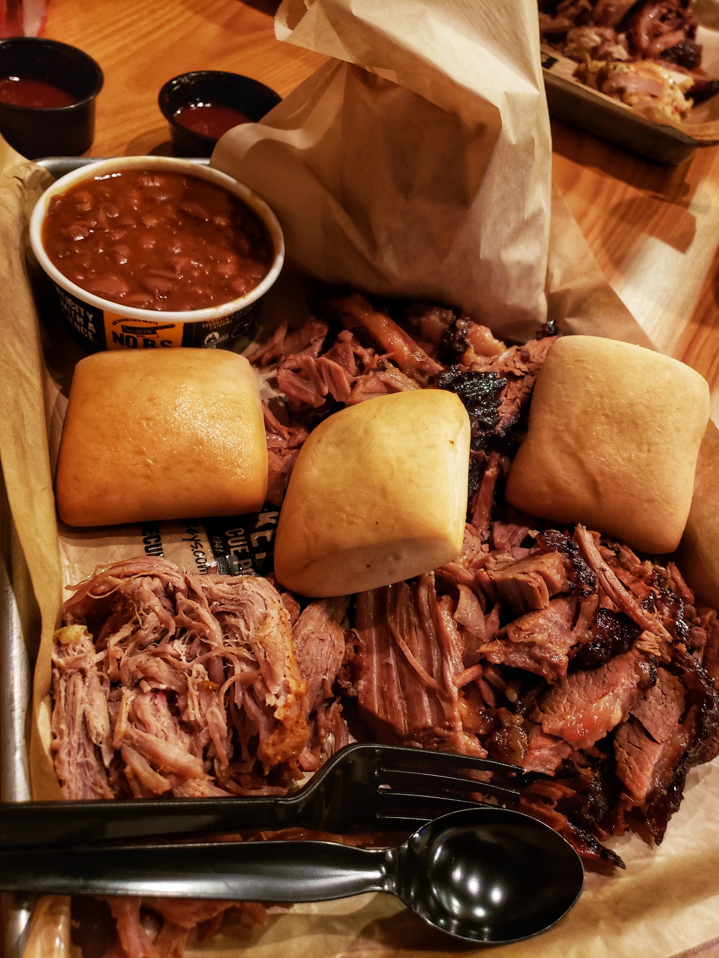 The sandwich was really good! Wasn't in the mood for the sauce, but the pulled pork was super tender. Love the onions & pickles on top. :-)