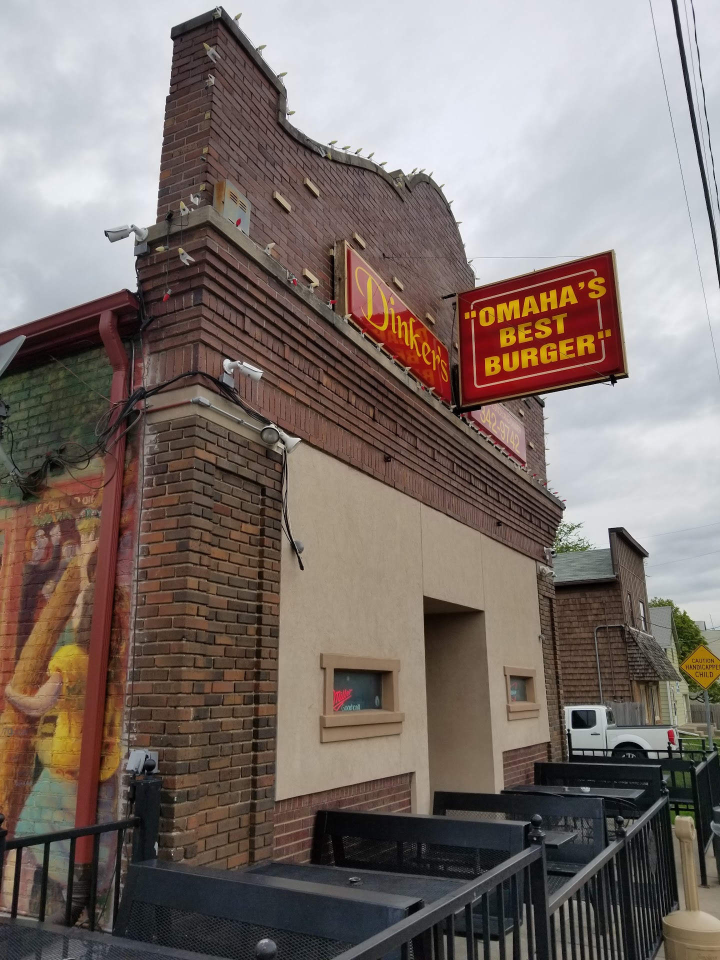Drawn to Dinker's because of its local history. It was established "in the heart of Sheely Town", a small largely Polish settlement in the late 1800's of which my great-grandfather had been Mayor. I thought it was so cool that this place was still around, and I was intrigued by the mural on the outside facade and the claim of "Omaha's Best Burger".