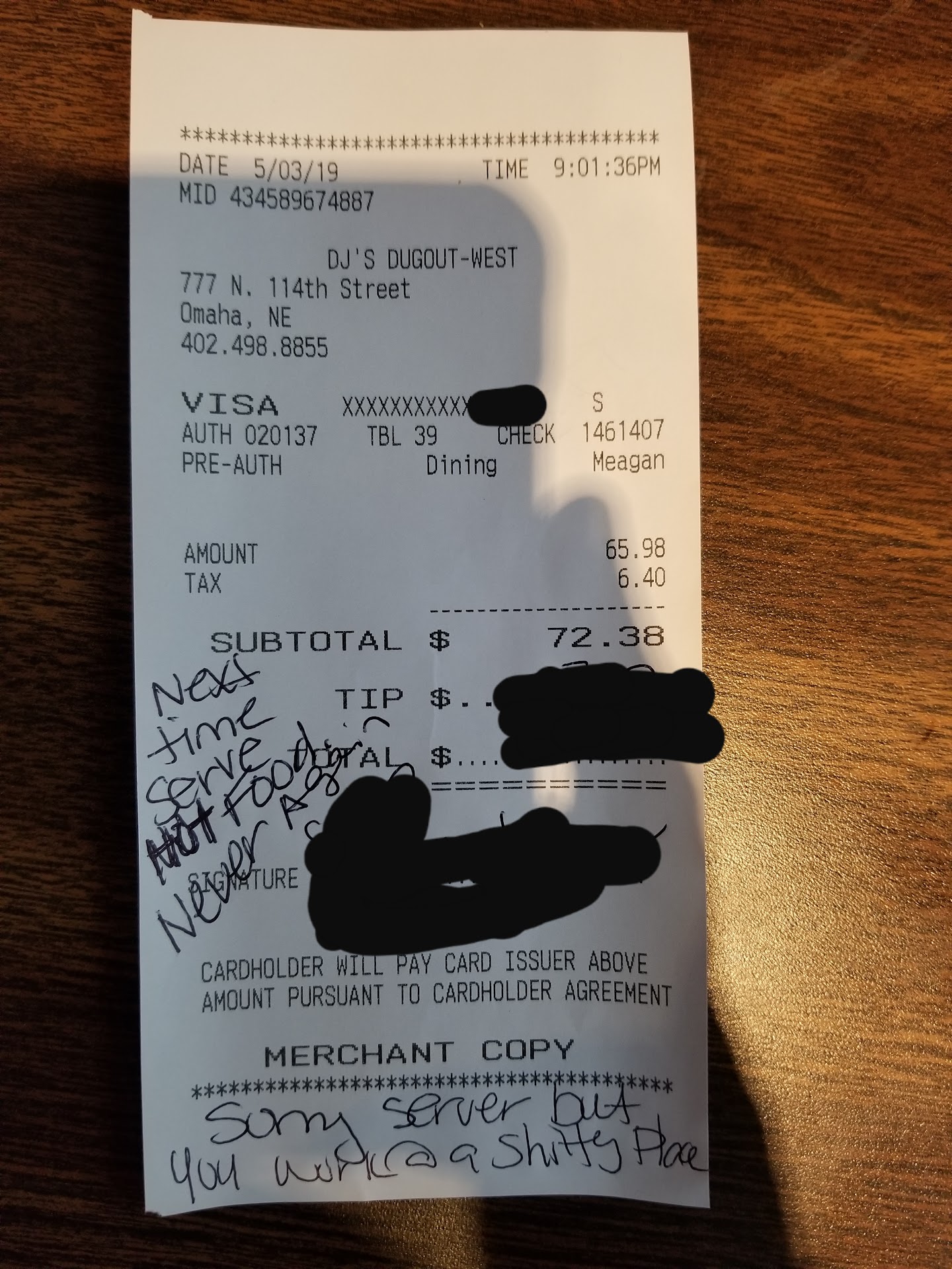 Read moreVery rude female lady working the main bar tonight.12/15/22 We called and waited 15 to 20 minites for our pickup order and at our designated time 6 minutes after the time provided and I decided to go in and pick up the order. The bartender said one minute and I said okay She asked from half way across the bar if I had a pickup order and I am hard of hearing and it was very loud. She came back and said a total and I let her know I paid online and told her the order. She rudely said âwell I asked you your order just now and said you have 2 dozen wings not a dozenâ and made a scowling and dissatisfying look. Again, I heard the word wings and nothing else because it was loud, so this behavior is uncalled for. I grabbed my food at this point upset at that this lady could talk to a customer like this when we have been in the car patiently and made it easier by coming in after a long wait with no update. I would have come in to get the food right away if someone said it was to busy to run the food out. The food is soggy and cold. The last few trips have been extremely disappointing from the quality of food and service. Going and getting dinner should not be this aggravating and time consuming when there are set pickup times. Waste of time and money. Do not recommend