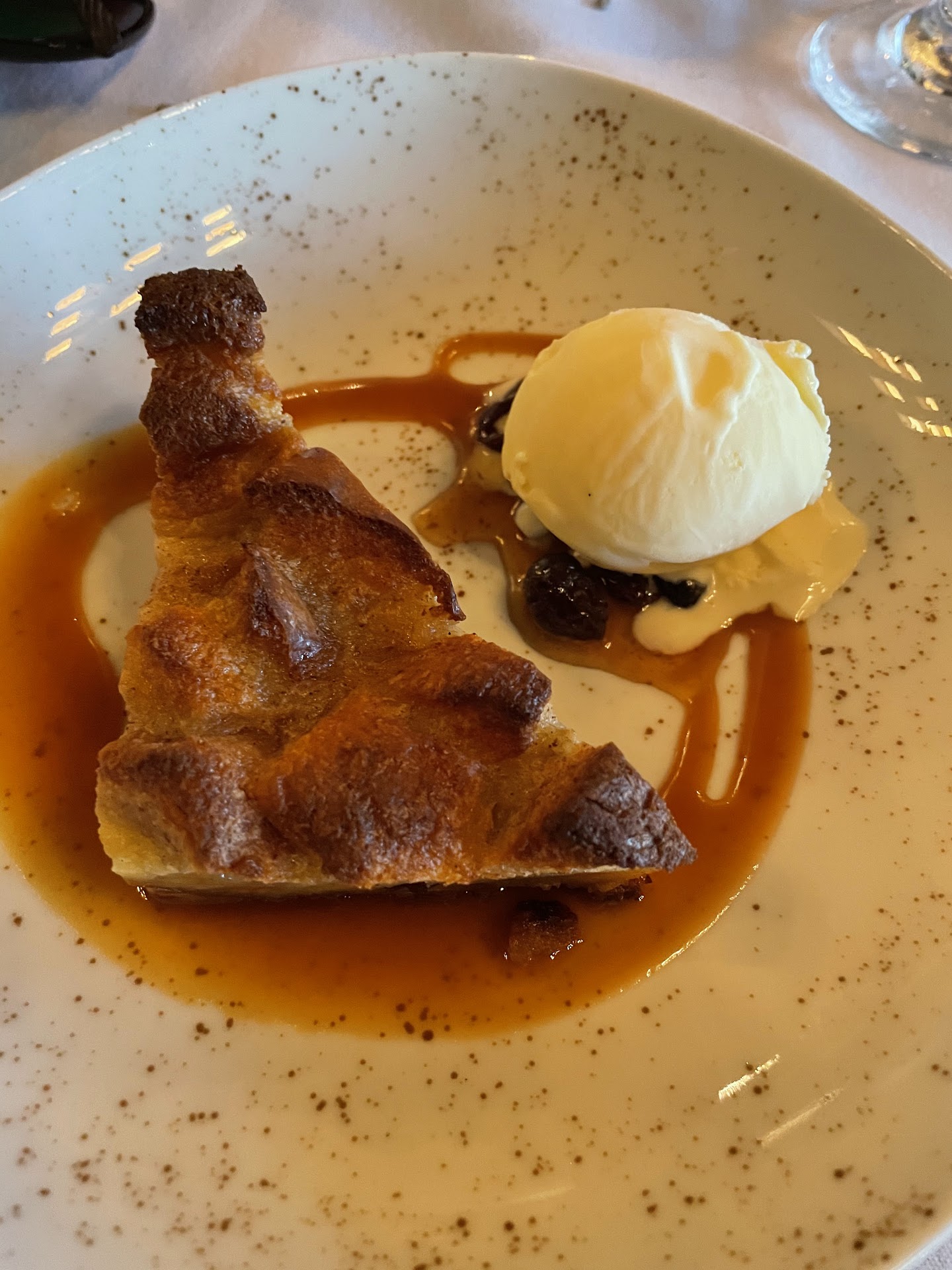 Dessert- We shared the bread pudding and while good, it was a little dry and maybe overly sweet for my liking. The caramel around the ice cream was overkill and I personally prefer a bread pudding that is more soaked consistency than dry outer and soft inner.