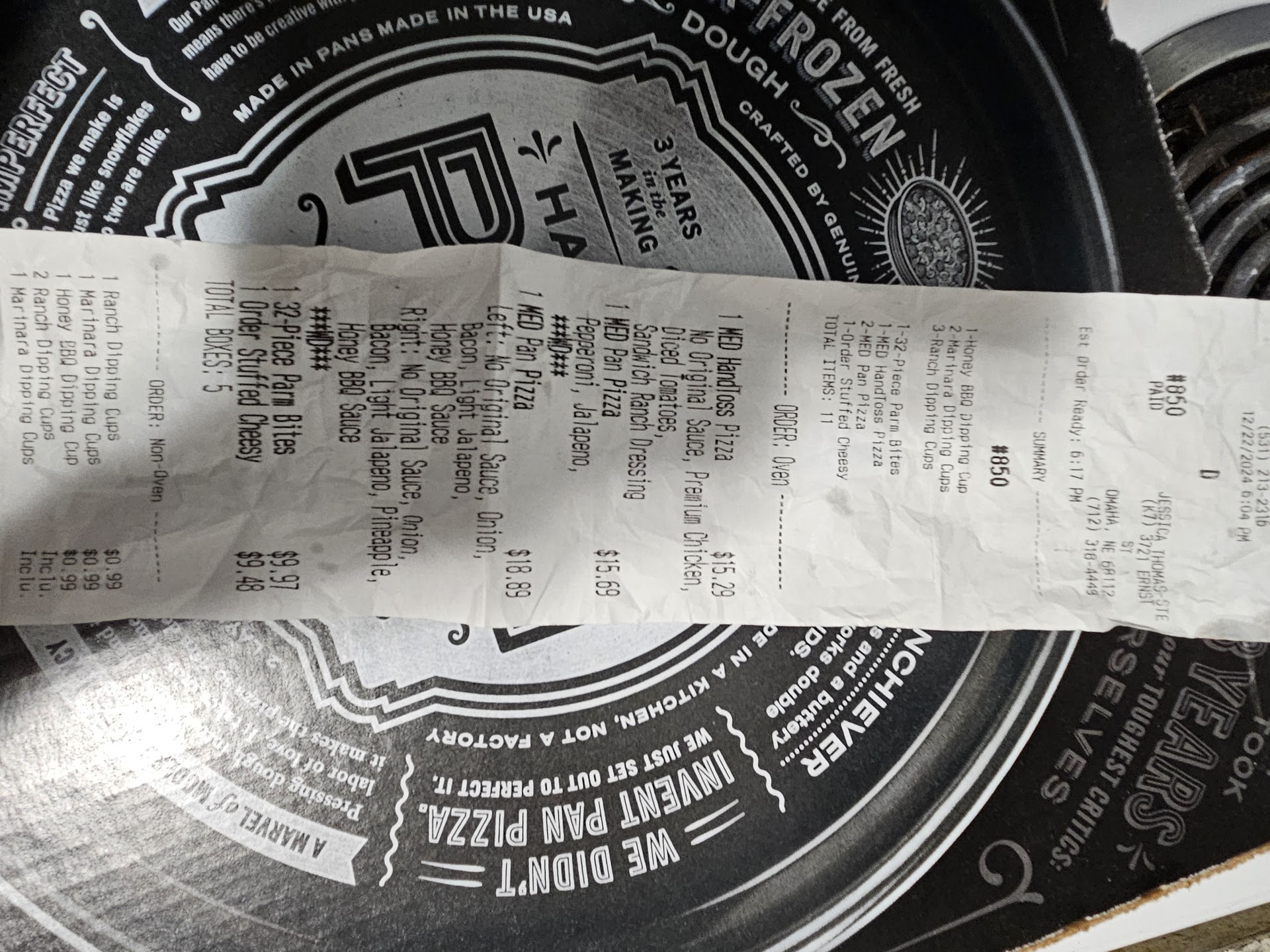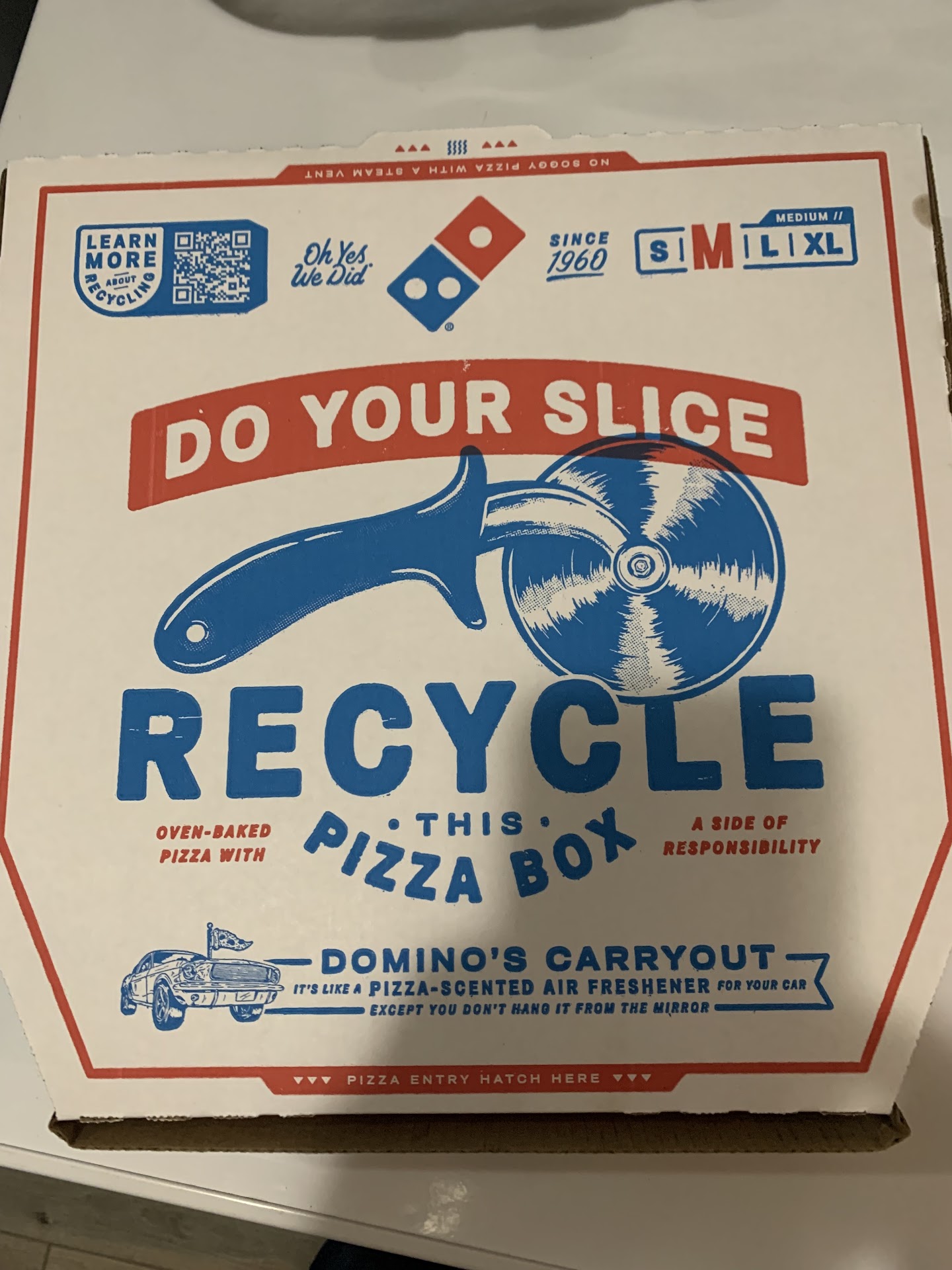 Read moreThis location is normally fine for me, I've barely had any issues except for the last time I ordered. I did it through the app for delivery and it said the order was completed/delivered (left at door) but it wasn't there. I have a camera so it would see if anyone came to my door to drop off or even steal the food. I called the place, was on hold for 10 min, hung up and called again and got through. Got transferred to a manager about the issue and she said the driver was telling her he left it on the steps. I looked everywhere outside and didn't see it and told them I have a camera. And she was like he said he heard it ding when he walked by. Well that is just straight up a lie or wrong house then cause my doorbell doesn't ding with motion, only if you press the button. If they pressed the button I would have 110% got a notification then! I told them this and they put my on hold for 30 min. I had to hang up and call back. On top of that, I happened to be outside while on hold and straight up saw the dominos driver drive by and stop at the wrong house to probably check if he delivered the pizza and then drive off.. like I saw the uniform so I am just confused. I just wanted my meal after a long day of work and...