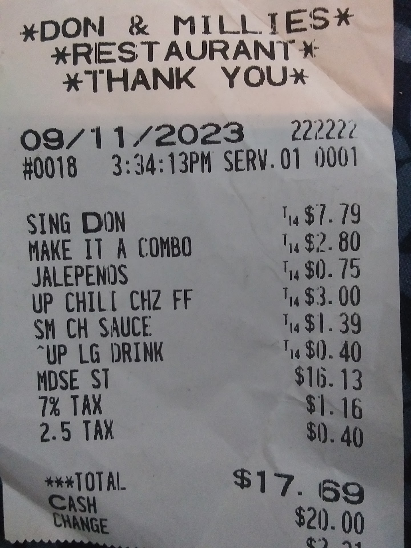 Read moreThis was by far the worst meal I have had in a very long time. Ordered the Double Don one with mayo and one without. There was very little mayo on the one sandwich and there was nothing on the other sandwich, no ketchup, no mustard nothing. The burgers were completely over cooked like they had been cooked hours earlier before we ordered them and salty, OMG, I have never had a cheeseburger where all I tasted was salt, there was no other flavors at all. The french fries were warm at best and once again so salty that is all you tasted. I asked for lots of ketchup when I received my order through the drive thru line and I got 4 very small packets. I do not call that allot of ketchup when ordering two cheeseburgers that do not have any ketchup on them, an order of fries and onion rings. I was so disappointed that I will never go back to this location again. The entire experience was absolutely awful. I ended up throwing my food away after a couple of bits, it...