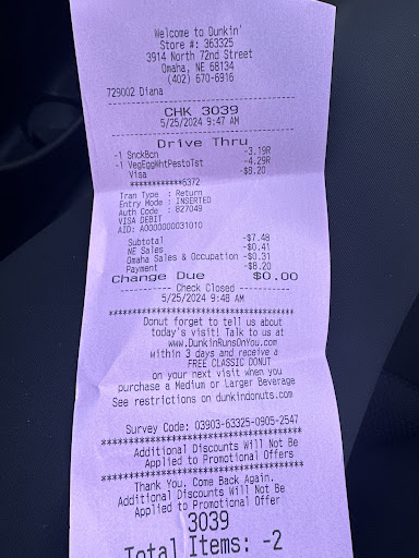 lol. horrible service. i asked if they had pumpkin, they said yes. i ordered an iced pumpkin macchiato with almond milk, was told the only milks they had were regular and coconut (so only one out of the 3 alternative milks, lol). fine, asked for coconut milk. they gave me my receipt which just said iced original macchiato with coconut milk. i tried my drink before leaving the parking lot and there was no flavoring whatsoever besides their espresso and coconut milk. went back through the drive thru to correct the issue and they started insisting they made my drink with coconut milk, not almond. i reminded them that was not the issue; there was no pumpkin flavoring in my drink. they insisted they āmade the drink and know for a fact it has pumpkin, i know it doesnāt say it on the receipt but it definitely has pumpkinā. it tasted nothing like pumpkin and had no sweetness; the pumpkin flavor swirl is pretty strong and almost overwhelmingly sweet. they clearly didnāt know what they were doing or were particularly concerned about decent service, so i just left. when i got home i went on the Dunkin app and it said that location was out of pumpkin. as a veteran barista (at real coffee shops, not Dunkin), i think itās bizarre they would go so far to lie and not simply be honest from the jump and ask if i wanted to choose a different flavor. coffee houses run out of pumpkin flavoring a lot since itās so popular, i understand that. so when i asked before i ordered, i donāt understand why they would waste their time (and mostly mine) lying. itās just mediocre coffee. itās not that serious. i only went there because they were the only place serving coffee with pumpkin near me. next year iāll just wait...