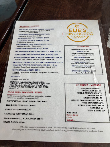 Read moreElie’s Chinchorro was a lackluster experience for us. The food was good, but the service and time to get ordered was not good. The place is very cute inside and somewhere I had been wanting to try for a while. We were sat right away. We were one of 7 tables when we arrived so not crazy busy or anything. Waters and menus came out quick and some complimentary bread showed up soon after which was very tasty. The issues started after that we didn’t have our order taken or see our server for 45 minutes. There were multiple servers helping other tables just not ours. Once we finally got our order taken the food took another 20 minutes or so which is completely fine in my opinion. Everything came out fresh. We had a beef and pork empandilla. The pork was definitely the star of the two, had awesome depth of flavors bouncing around your mouth. Beef was still good just would stick with pork next time. We wanted to try multiple things so we ordered the Truya which is a sampler platter, the plantains were very good, the chicken chiccaron and fried pork were both good. The turnover and alcapurria were also good just wish we had a salsa of sorts to put on them to help with some dryness. I also ordered the pernil al horno plate. The roasted pork was very good, ton of flavor, not dried out at all. The habichuelas (beans) were amazing tons of flavor used them as a dipping sauce for some of the platter items since we didn’t have salsas. Overall the food is good if you don’t mind waiting a long long time for service. Would maybe try it again for apps and drinks. Not sure I’d be back for lunch/dinner without a tester of service for...
