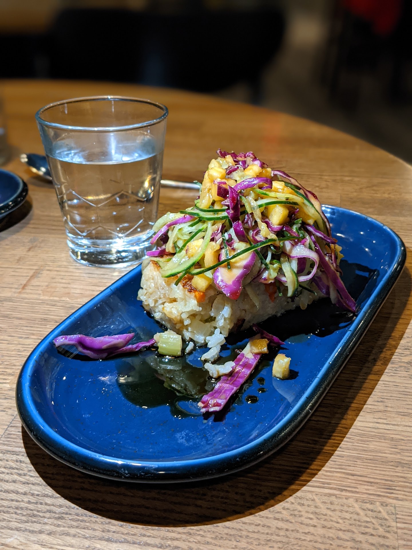 Fried rice 3 stars The crispy bits were good, but the majority of it wasn't and it was quite wet for a fried rice. If you take away from the fact it's supposed to be fried rice and judge the dish on it's own, the rice was a bit bland. Even when mixed with the flavorful vegetables it still came across a bit bland.
