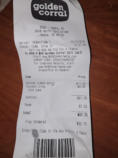 Ā Ā Ā Read moreUpdate: this year they had air and we shivered. Again very nice even with alot of new workers. We also found the food delicious. My favorite is the red color cake I think had red jello in it, but it did have cool whip around it. I had 2 pieces as our special time and I would've had a third of my body could handle that much red in it. The cream was working fully and even the slushy machine. Our kids always wanted one and for last 3 years it didn't work, so finally this year it did. I love the swirl and that usually down when we go for ice cream. The lady that cooked the dessert did Awsome. I usually eat more from the other area but I decided do small on the healthy and treat myself to the bread pudding and other desserts I mentioned. Thank you ounce again and you make it hard to go to any other location when you do so well. Next time I think we need explore more, but we say this is our favorite location of golden corral buffet and grill.