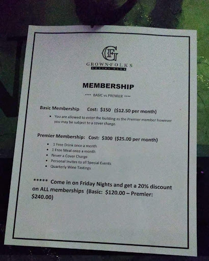 Ā Ā Ā Read moreLooking for a great atmosphere, low key, mature, private, good drinks (4-6 happy hour), and amazing food specials? Then stop by at Grown Folks (Social Club). The owner who also fills in as the bartender knows his drinks and his meats (smoked). So if itās a just a galās or guyās night out, a romantic coupleās date or just need a drink after a long day. Grown Folks is the place to...