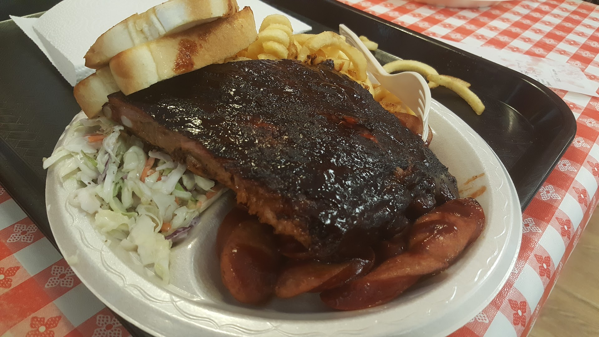 It is clear to me that the owners just have NO PASSION FOR COOKING WHATSOEVER. When I go out to eat, I can usually find ONE thing about the meal that I really enjoyed. I literally found ZERO things to say anything good about their food. The ribs were tasteless, the brisket was barely edible, the baked beans were like chili, and the cole slaw was dry and tasteless. I literally did not finish ONE thing that I ordered... except the Texas toast. TERRIBLE OVERALL EXPERIENCE,...