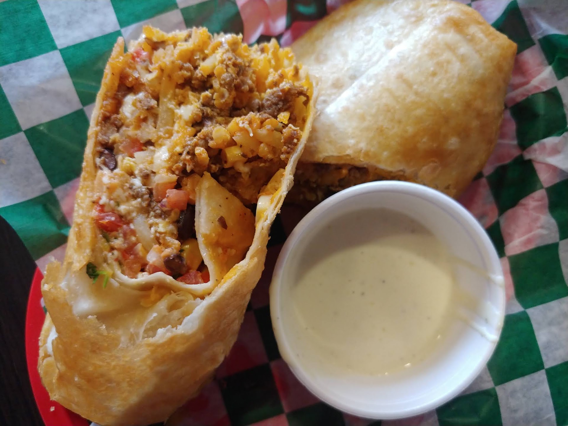 This image attached was one of the few times I actually managed to remember to take a pic before just diving right in on it. I gotta say I must've been in the right place at the right time, bc I over heard him talking about some new ideas he was thinking about introducing and one of them happened to be about frying the burritos. I asked him if I could be one of the first to try - and boy was I excited when he said sure!