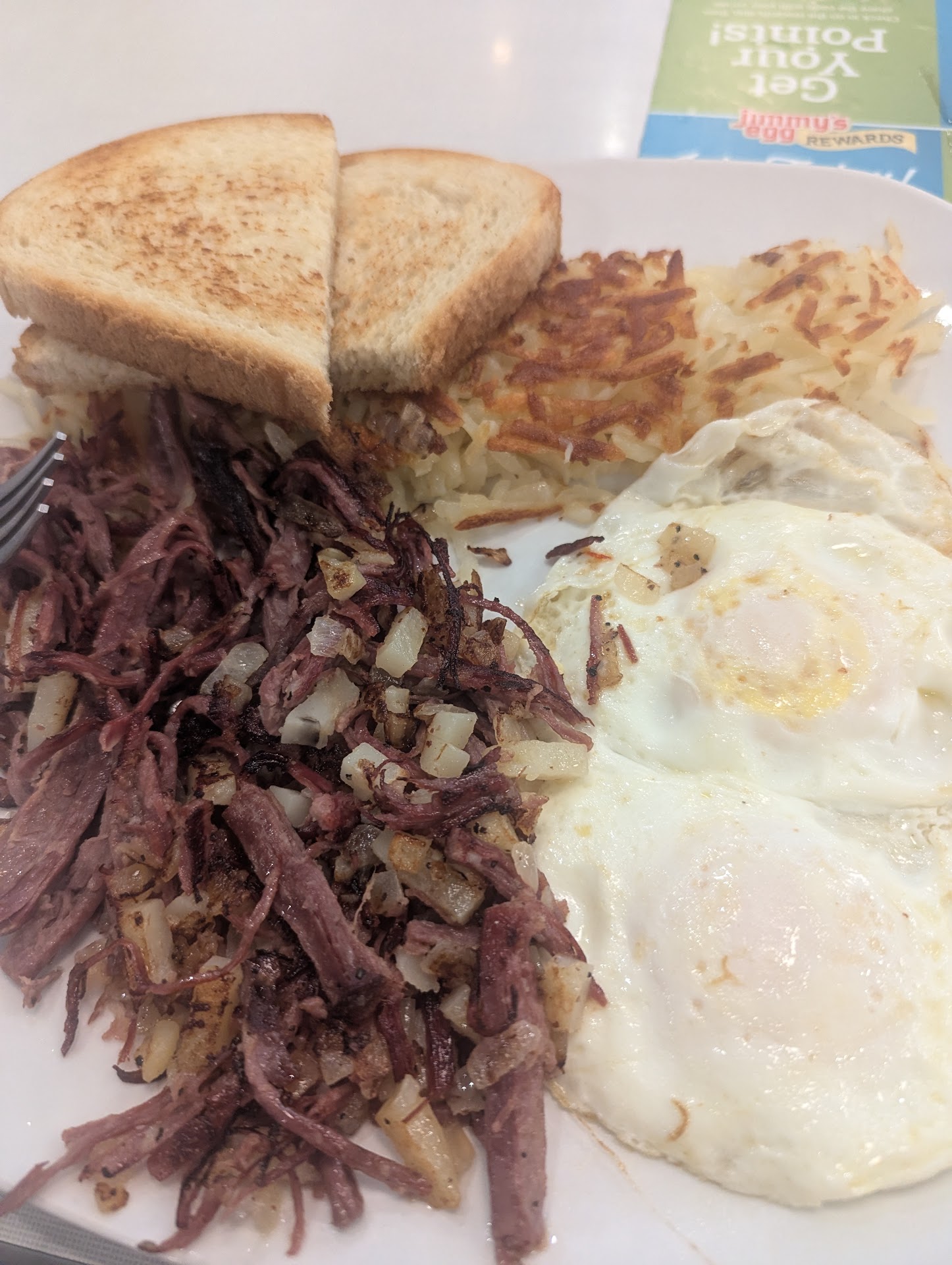 Read moreThe food was excellent. But the service is questionable. I worked a 16 hour shift and thought it would be nice to take my kids out to eat before I take a nap. We walk in we wait about 5 minutes before we get acknowledged at the table and the waitress who asks us for our drink was an Ashley. She gave us kids menus and colors. She brings us the drinks then takes our order. I corrected her as she was trying to give me 4 kids meal & I only needed 3, one each child. She leaves and comes back with food soon after. She sat food down I said the order of one of the plates was wrong. She said she repeated the order and thought she had it correct and I said I had corrected her but she still brought wrong plate. She rolls her eyes, gives a big sigh and grabs the plate with attitude. She comes back with the correct plate sat it down again with attitude and walked away. At this point I’m annoyed. Annoyed at the fact that I always come to this jimmys egg and never have issues but for whatever reason this waitress thinks customer service isn’t her priority. It ruined my whole morning because I felt the way I was treated with my kids beside me was unfair. The food was great as mentioned but the service could definitely...