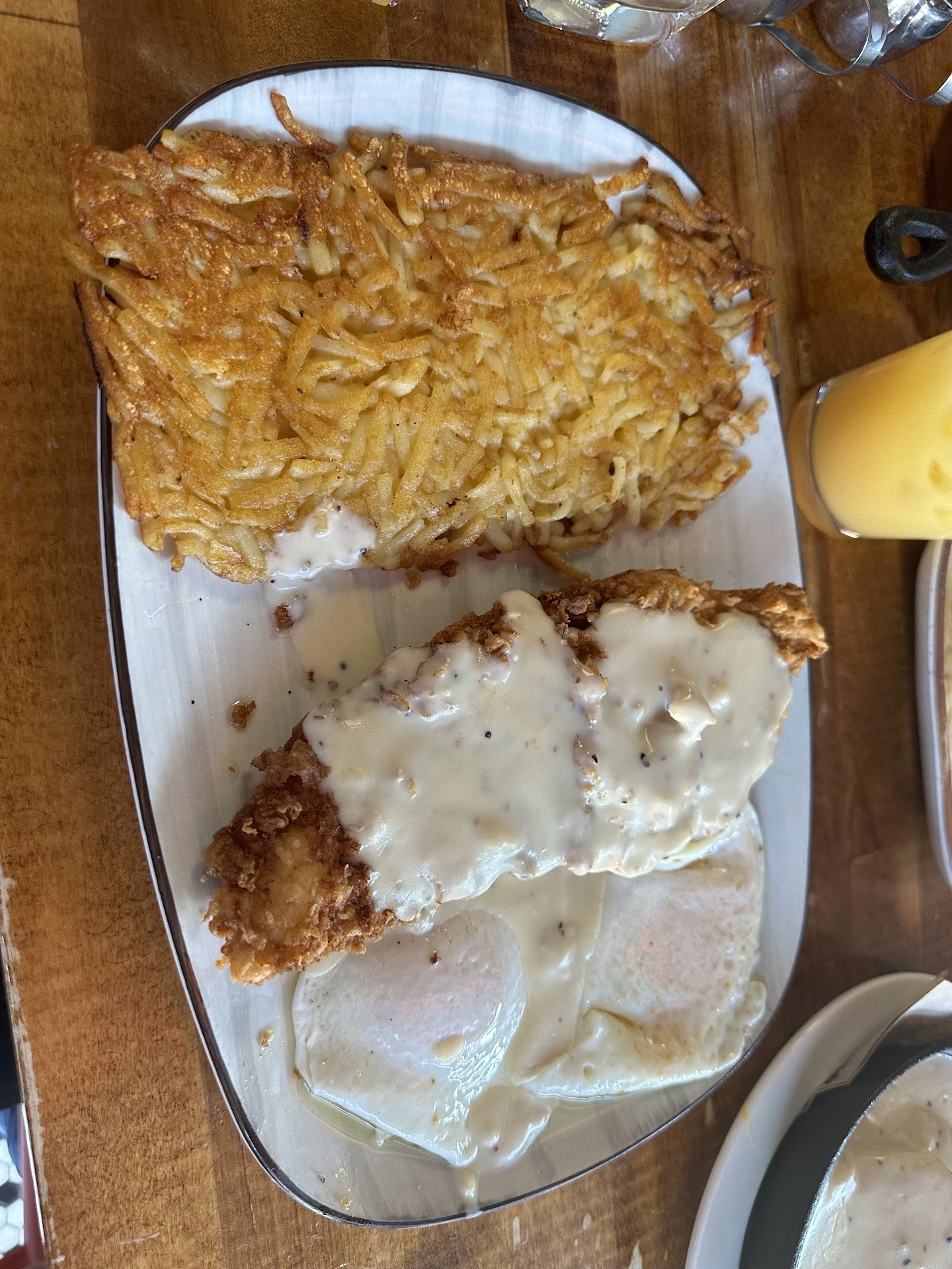 Read moreThe whipped butter... was in pats... that were SOLID. Extra butter consists of 2 hard pats instead of one... with three fairly decent sized pancakes. My pancakes and water plus a friend's hashbrown slab, 3 eggs, 5oz strips of THIN steak and an OJ exceeded a bill of $30. I couldn't believe that.