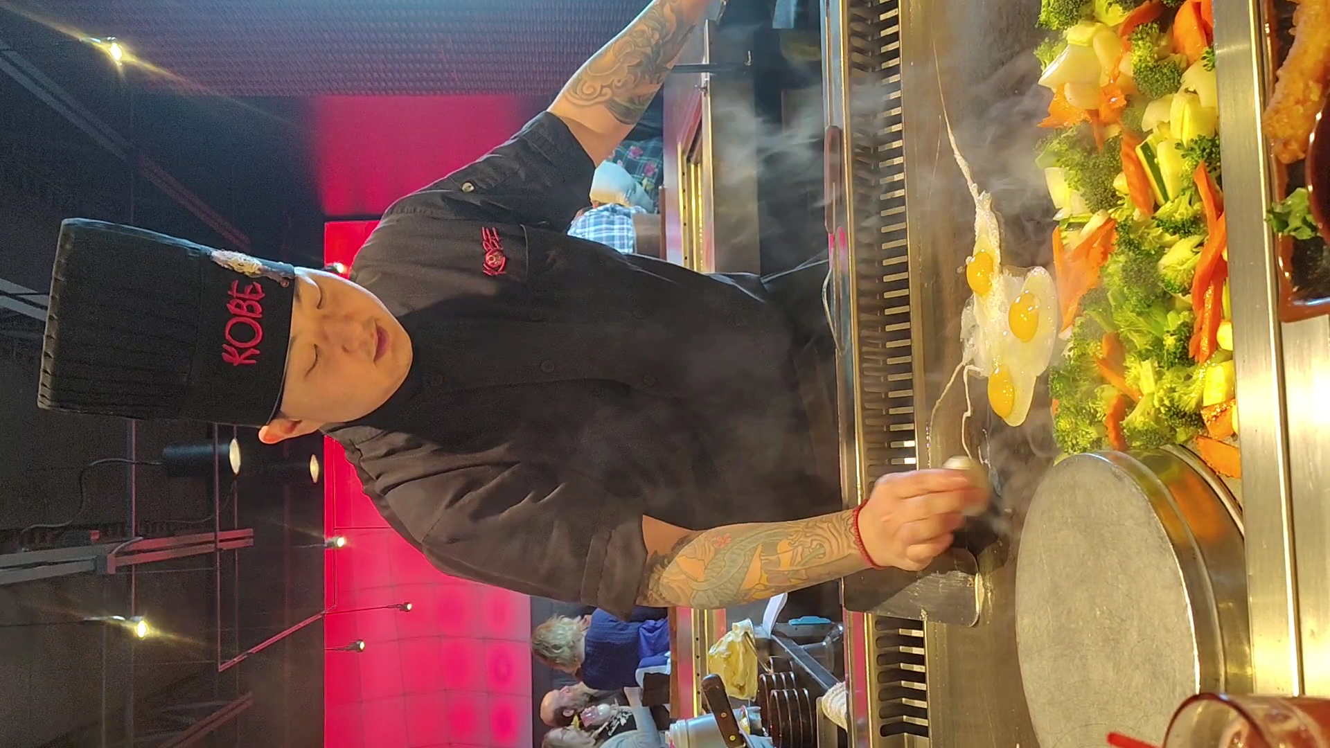 In my liking the food was very good and cooked to perfection I like my steak medium and he got it just right. It's kind of hard to do is your flipping knives and long-bladed speechless around while talking and putting on a show for those who you're cooking for 2 feet away.