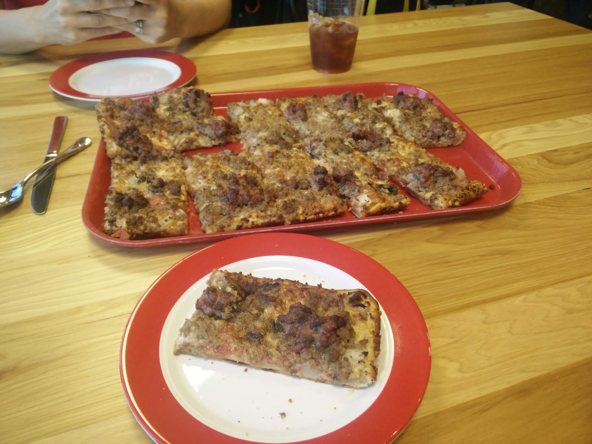 Pizza was God awful, Got a small meat lovers-ish. Pizza dough was crispy but toppings and sauce bland. I'm someone who hates over salted and seasoned stuff as a reference. Literally no taste on pepperoni. Beef had no seasoning, dry and pulverized to a powder. Overall pizza was greasy, as well.