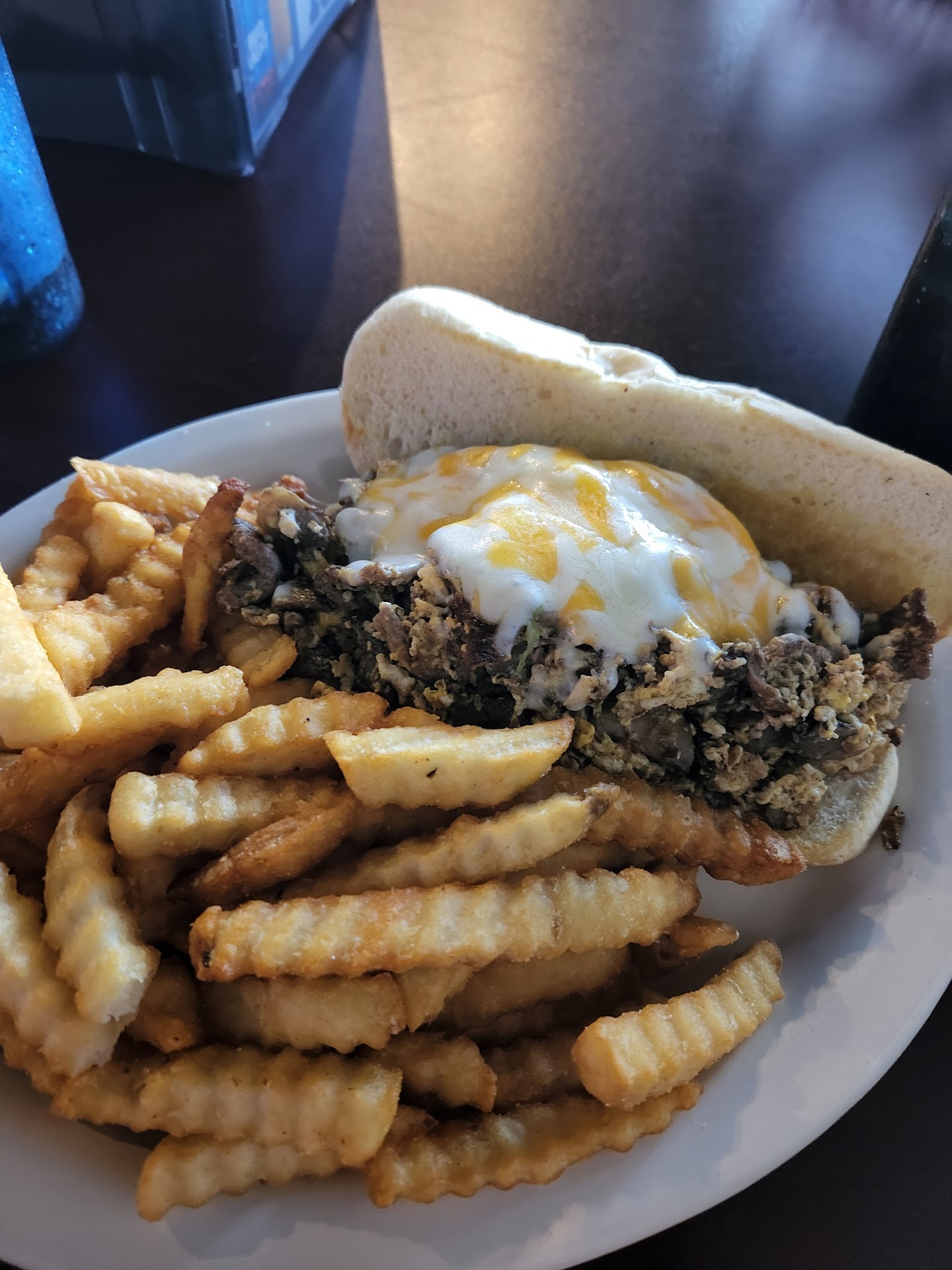 I've been here 3 times in the last week, being a regular across the street at another bar, was hoping this place would make a great equal with the option of food. 1st 2 visits, food was excellent, service 1st time was perfect, 2nd time a little awkward (someting going on with an employee not doing their job and a meeting everyone was going to have, at 7pm on a Friday, perfect timing for a meeting) 3rd visit was for the late NFL games (11/3), and had the absolute worst service I've had in at least the last 10 years. We sat for quite some time when finally a waitress (who had noticed us there then later noticed we still hadn't been helped) came over with menus and informed us she let our waiter know we were there. He came over and took our drink order. 1 to 2 minutes later, with no drinks still, we were asked if we were ready to order food. We said we'd wait a little longer. Drinks came, we ordered, and I ordered another drink as mine was almost gone. Our food came out before my drink. Another waitress walked by and asked if I was still waiting on my drink. I said yes. Then our waiter came back over and asked if we needed anything, and once again, I said my drink. He walked away, walked back, and informed me has had it in hes just waiting for her to make it, and points to the bartender standing at a table talking to the guests. My guess from our other visits is this was the manager from the other nights, bartending this afternoon. Half my food was done before I finally got my drink. I don't know if it was the waiter forgetting to put it in, the bartender not caring, or what but either way we will not return or recommend this location to anyone. Its hard to complain at the the time when the problem according to your waiter is the one in charge. Also, I'm not sure if he was a regular, a coworker, or an owner, but another patron that seemed to know everyone was more important to all staff then customers. Enough that while waiting for my drink my waiter sat at his empty booth with him and talked. He cursed while walking and talking with other waitresses, which is great to be seen done by what felt like an employee in an area that had children in it. As you can see I only review when I think things have been unbelievably bad or wrong and others should be aware. So to sum up: The food is so far all great to just amazing. The service was like a bar and grill ran by teenagers who's boss was gone and they were about to be going out of business. Get a to go order of food, and maybe try the other locations to dine inn. Foods are 5 star, everything...