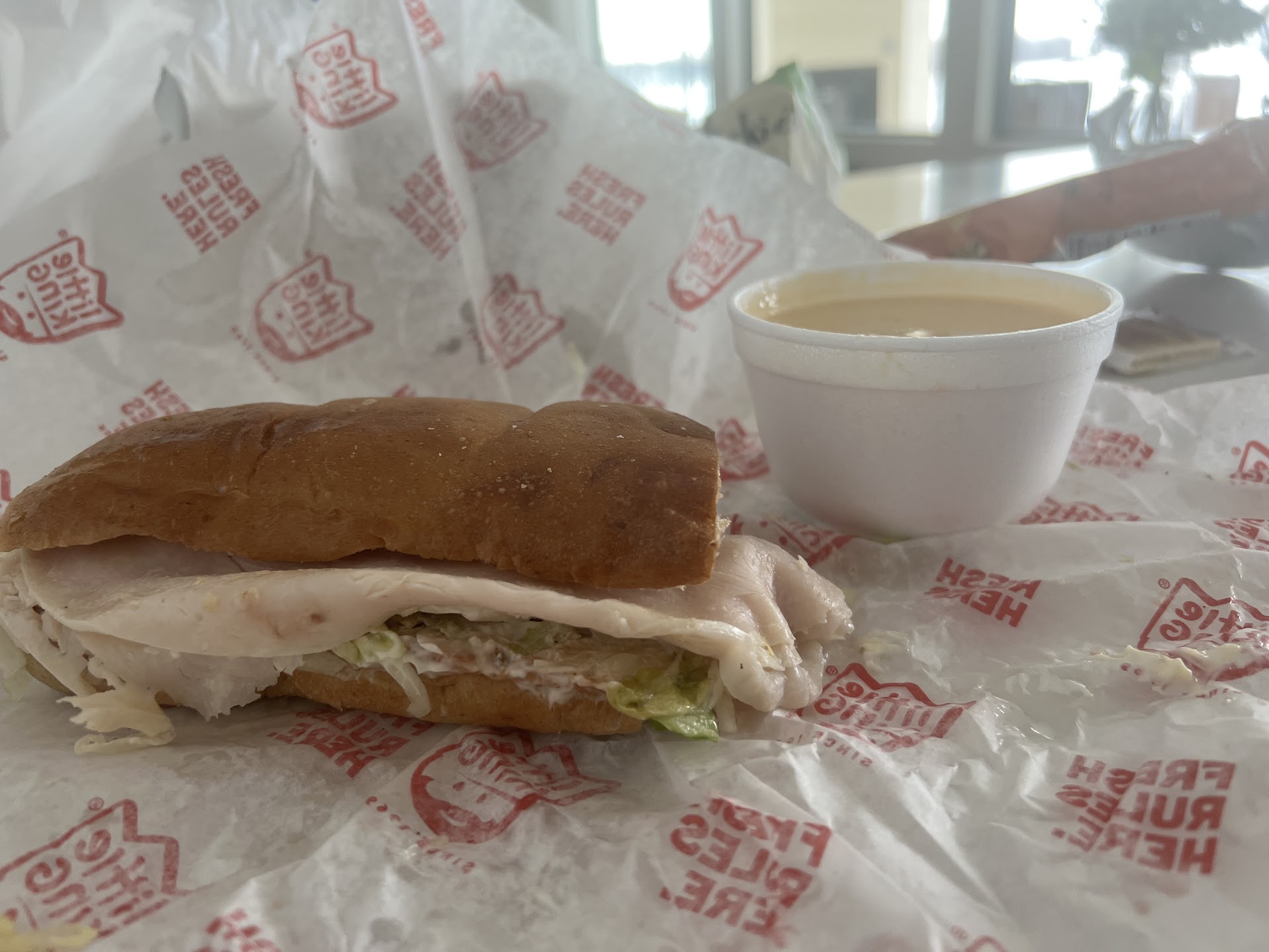 Little kings is absolutely my favorite sandwich place. This location however, is unfriendly, unorganized and will make you feel like you have inconvenienced them. This is the second time I’ve come to this location, downtown I go at least once a week and they are great. They didn’t have cucumbers or cherry peppers, the kid said what you see is what we got. I had to repeat my turkey and provolone add bacon to the dude 4 times. after every time he would ask what it was I wanted again??? he would say is that it or what? Uh 😐 there is about half of an entire onion on my Sammy and asking for a few banana peppers I got a lot.