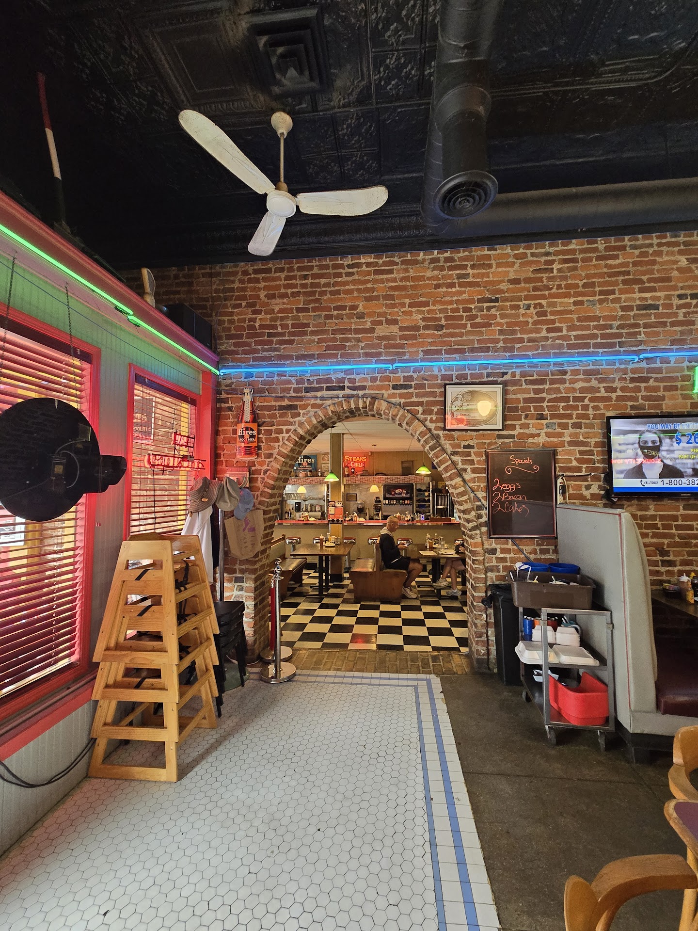 Read moreIt was a busy sunday and we had to wait for a seat which was fine. The establishment was so small and there were already lots of people waiting inside to be called for a table. The owners brother suggested we sat and waited outside. After about 40 minutes had passed I had my husband ask about our table because I had seen people who arrived later than us already seated. They told my husband that they had made a mistake and forgot about putting our names on the list and forgot about our table. It was horrible because I have 3 children under 3 and having them wait outside on a main road was exhausting. I was so annoyed and tired from waiting I was ready to walk out and go somewhere else and I believe it was the owners wife stopped me and apologized and said she would offer us 10% off and make me a mixed drink (mimosa) to make up for it. That was very sweet of her and it made the dining experience somewhat better. I do appreciate her offering the incentives but still I'm not sure I would go here again. The food was mediocre at best, and our silverware was dirty with old crusted food on them, and the tables were barely wiped down with food debre scrambled about. We just moved here from Las Vegas so I guess my dining expectations are a little too high for a...