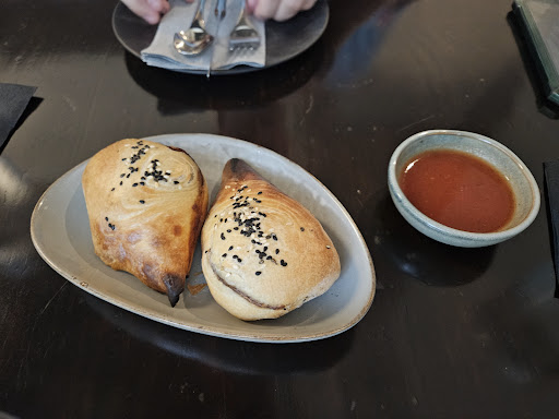 We ended up with an appetizer. Man they were fresh hot and flaky. They were huge too and very flavorful. But the sauce... Woah that sauce was addicting.