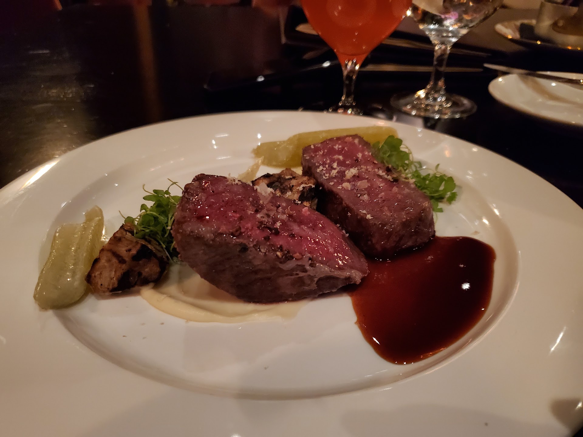 Anyway, I order the lemon risotto with steak and my husband gets the chicken Marsala - I would say it was 6/10 for both dishes, so the food wasnât stellar tonight. The wine the waitress recommended was excellent (maybe bc I really needed it for my nerves đĽ´).