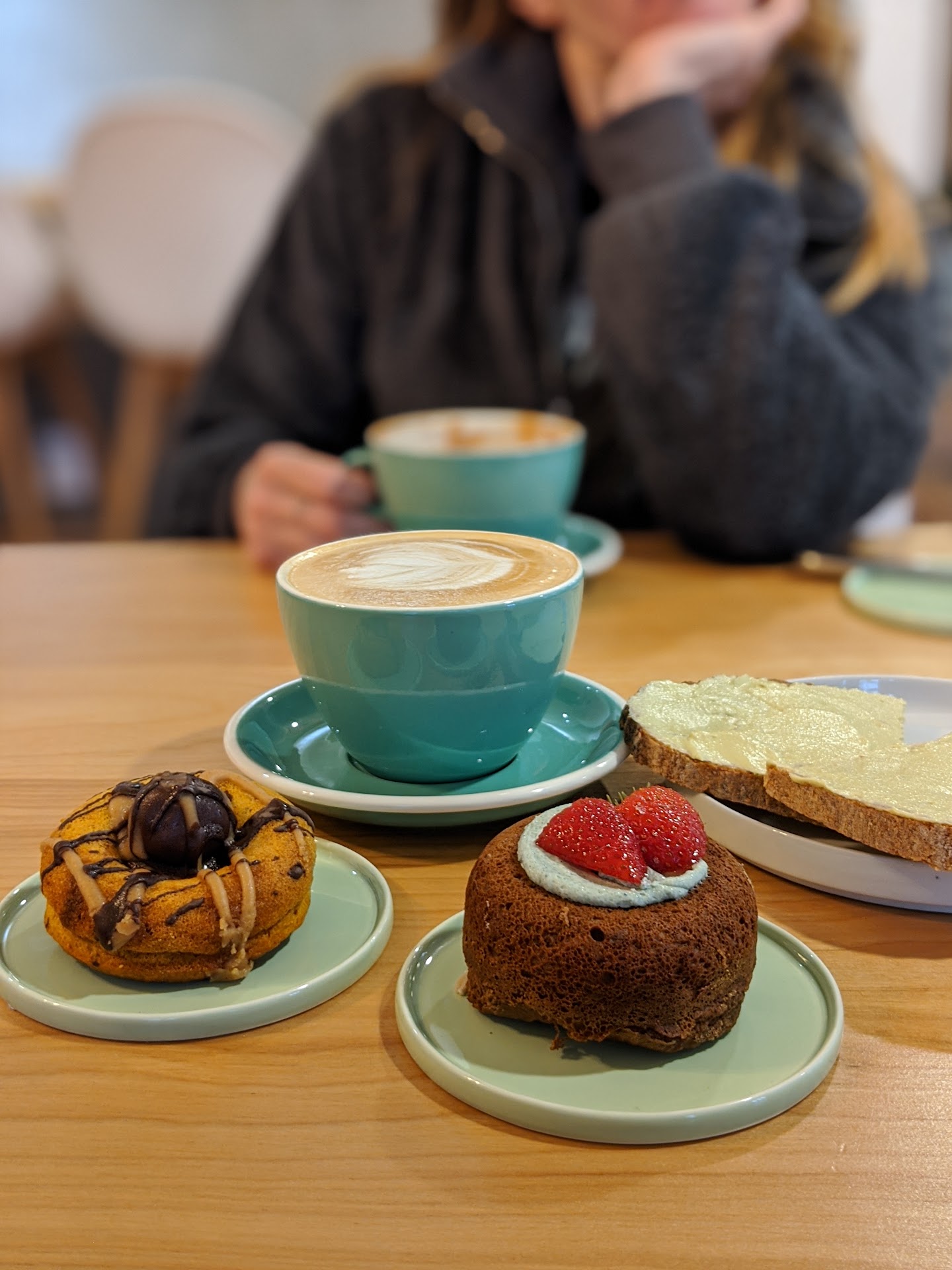 The coffee is also fantastic. I’ve talked with the owners on multiple occasions (they are very nice people!), and I’ve found that every item I’ve talked to them about is either homemade or locally sourced - from their non dairy milk and creams (made in house!) to their selection of loose teas and baked goods. My personal favorite drinks are the maple date latte (I like it iced), and the jade matcha (hot). Their nut mills are so creamy that they are comparable to dairy milk.