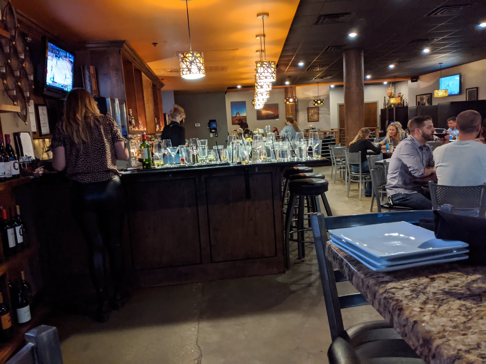 Keep in mind the number of tables in the restaurant didn't change for about 90 minutes so we were very unclear about why our service was so aweful. When we arrived, the area of the bar that we were sitting next to was covered in bar glasses. Since there were so few employees, the number of glasses just kept growing. The glasses didn't get washed until we were getting ready to leave. We ended up being there for over 2 hours.