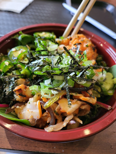 The Poke Bowl itself. On the Proteins (and their Appetizer menu), it states "Octopus Salad." The man behind the counter even repeated each item I stated and when he stated Octopus, he put SQUID SALAD on the bowl. I attached a pic of my bowl as well as what "calamari (squid) salad" looks like - I eat squid salad regularly. I even double checked their menu, and they do not have squid salad on the menu. They just have "Octopus Salad" on the menu. I'm a little (...actually very) bothered by the fact that they list Octopus Salad, but are only serving squid salad. If you don't know the items you stock to serve to the public, there is a bigger problem at hand.