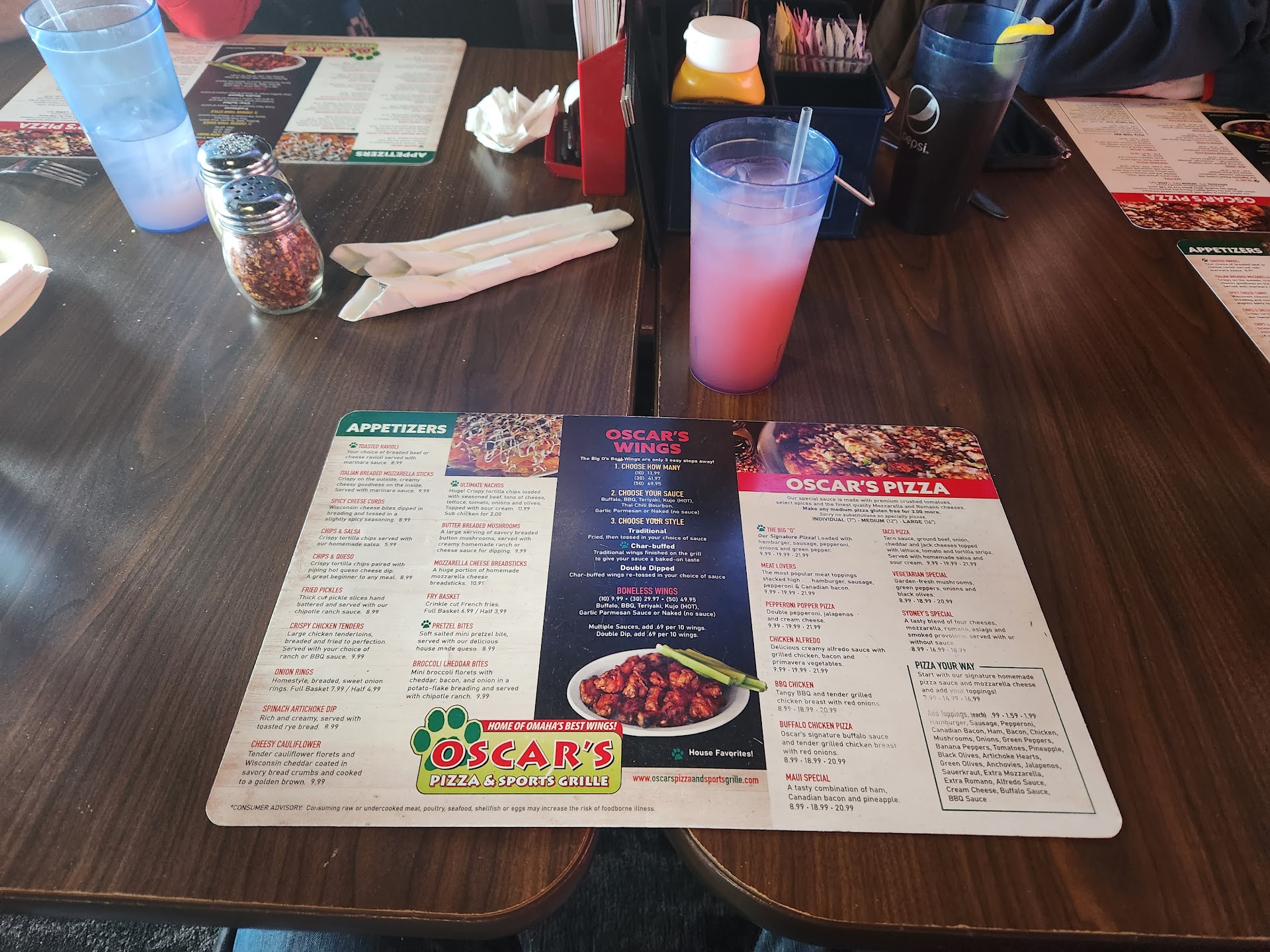 Back in omaha for a long wknd we had to make our first dinner with our 5 of our kids and 7 grandkids Oscar's. It did not take long and they had us set up in a great table for all of us. It took longer for us to order than it did for them to start bringing out food... 4 or 5 pizzas chicken strips mini corn dogs french fries and all our drinks. They did a fantastic job and it was under 300 bones !!!!!! Food was amazing as always and our waitress was awesome and always close for more drinks. Didn't care for the woman behind the bar, she was talking to a friend obviously and didn't mind making me wait for her to finish her conversation and then told me that she would give my card and tab to our waitress so the tab could keep running, at the end I told my waitress this, she went to the bar and came back and the bartender told her I had to come up and close the tab at the bar, I guess so she could make sure she got her tip for her terrible service. However she is just one part of a larger operation so I won't hold that against everyone.... overall great thank you and we will be back next...