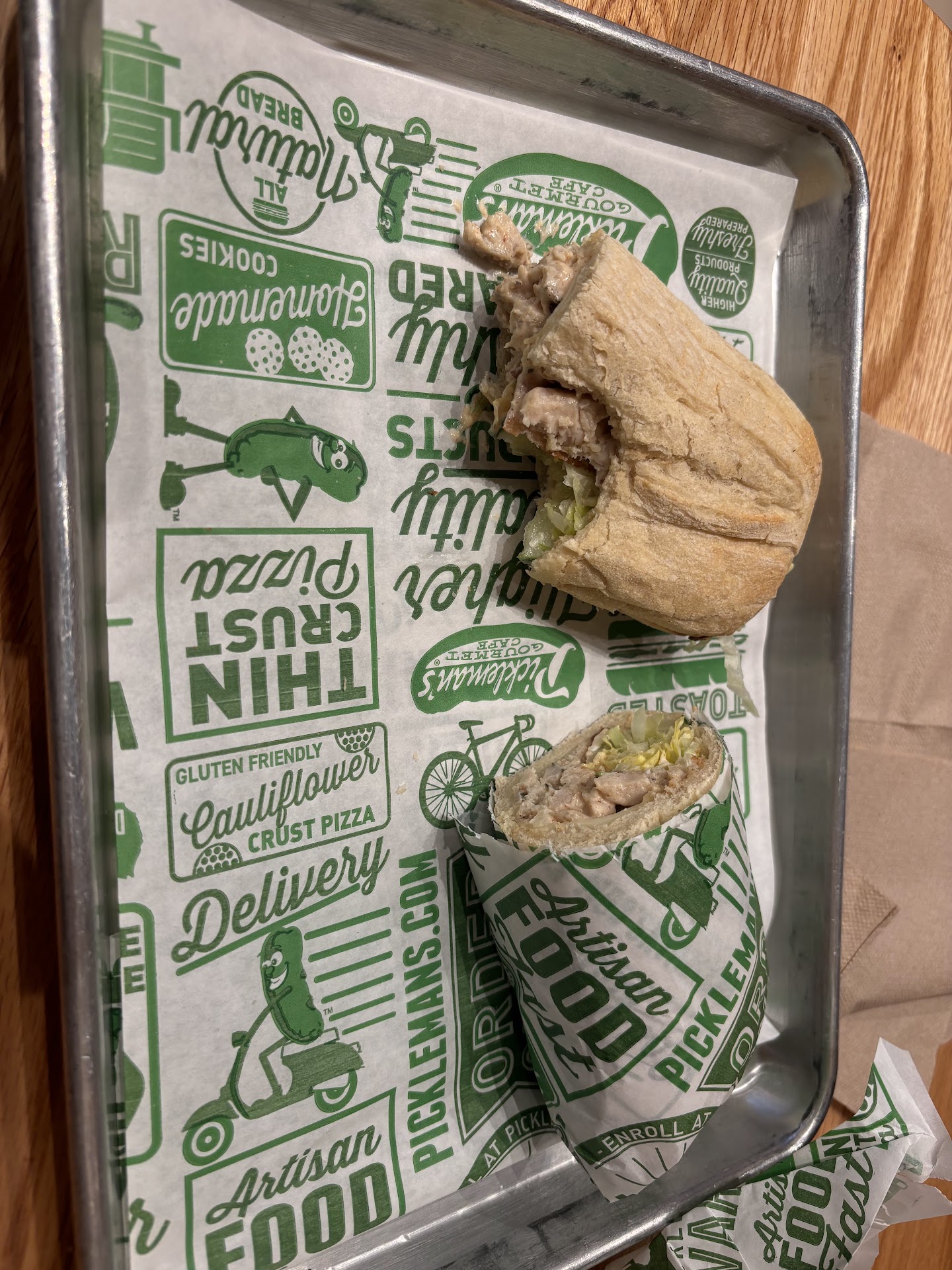 Read moreI normally love Pickleman’s, but this one is not it. I ordered the #15 Buffalo Chicken with extra chicken and extra blue cheese. When I opened it was drenched in Buffalo sauce, and the sandwich was cold. The chicken was cold, everything was cold, it had not been toasted at all.