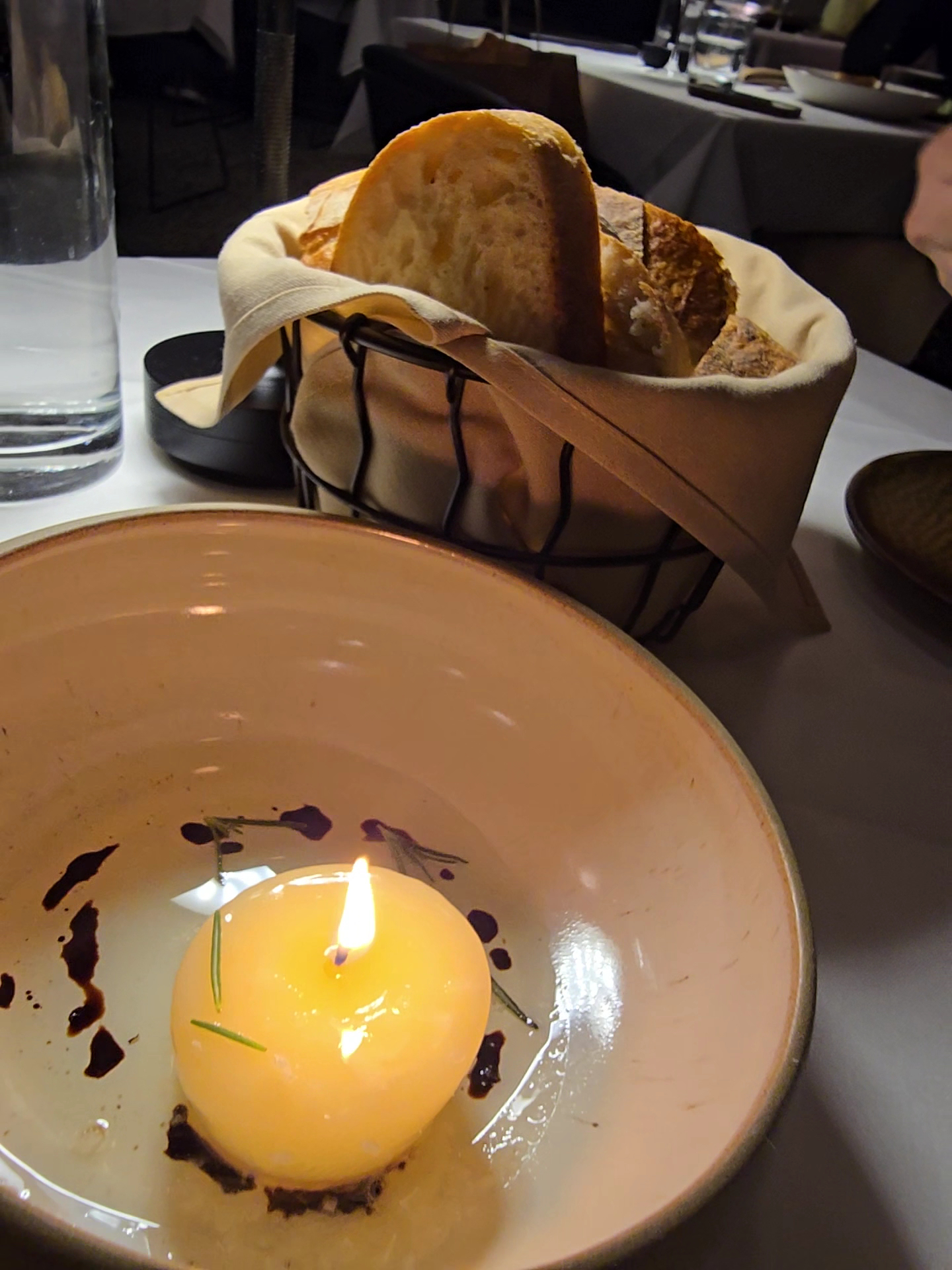 OKs: "Beef Tallow Candle" was pitched to us, so we tried it. It is unique and interesting, but not worth the $18. I'd recommend the restaurant offer this to each table with bread - would set the stage for excellent service and a memorable experience.