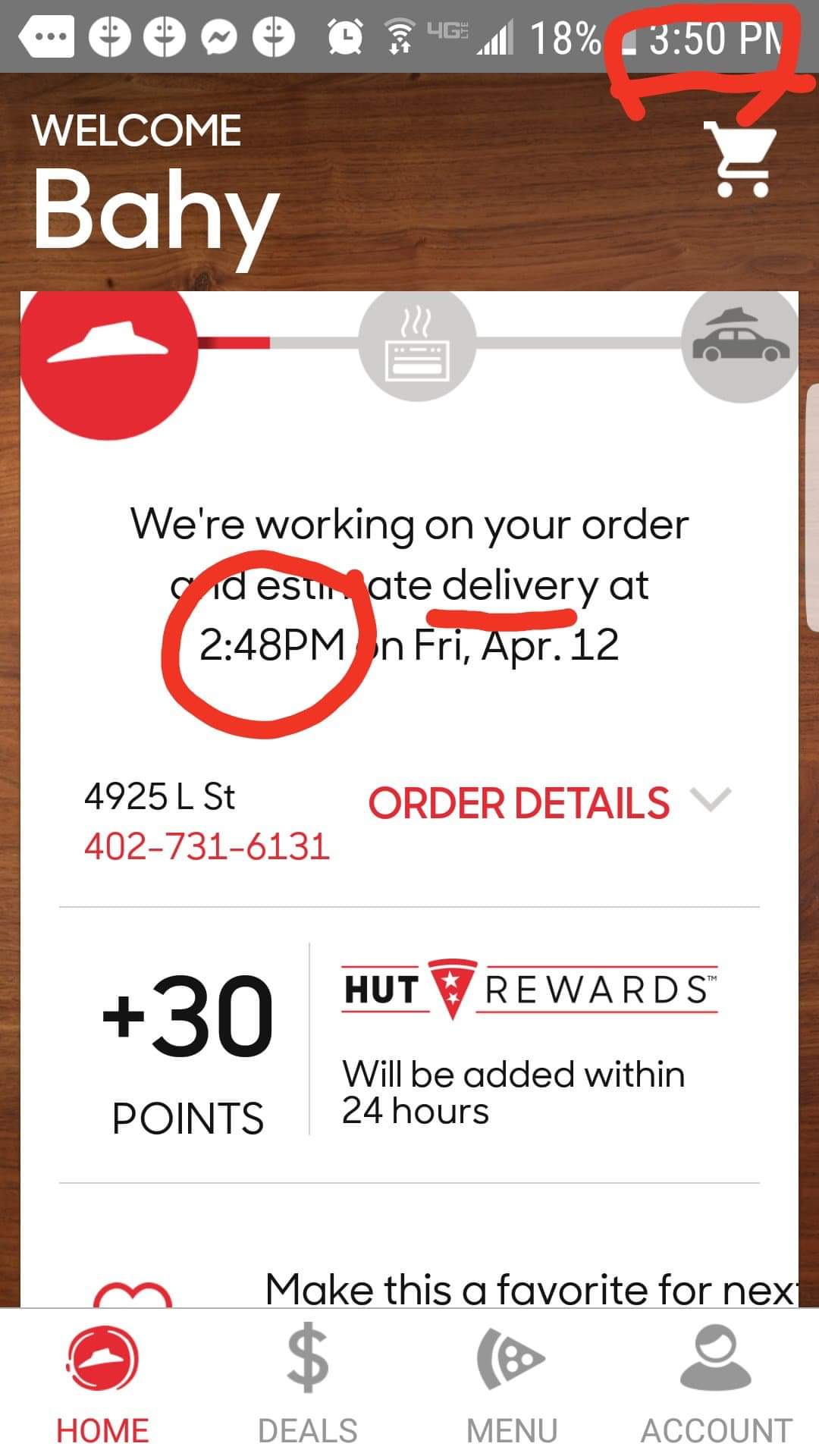 Not even that I had to wait an hour for my food. That's never the issue thats expected. Whats not expect that when you order something you get what you ordered. The delivery drive came nice girl. All my food was smashed and cold and she just shrugged it off saying it was still good and left. Call the store. Gentleman answered the phone (can tell he did not listen to a word I said) had to repeat myself 3xs as to why I was calling. Finally when he got it was told what did I want him to do about it. Politely told the gentleman a remake or a refund. He told me I wasnt get a refund but he can remake my pizza. Told him that was not acceptable and wanted a refund simce my order could not be remade. Was told that wasnt going to happen. I explained to him that no only did the driver forget my plates, peppers,and cheese (she doesnt look at the tickets I was told ) that my wings were terribly cold. My cookie pie was smashed pizza was smashed and pasta was smashed and cold. He just sat on the phone for good 2 minutes silently when he finally said he was remaking the food and I would have to give everything back which is not a problem. I don't like rude people and he was bluntly rude and nonchalant. I understand that I could just warmed my own food up, but my thing is if I'm paying $39 for something I want was is suppise to happen which is hot food and not smashed with everything I asked for especially if I'm waiting iver an...