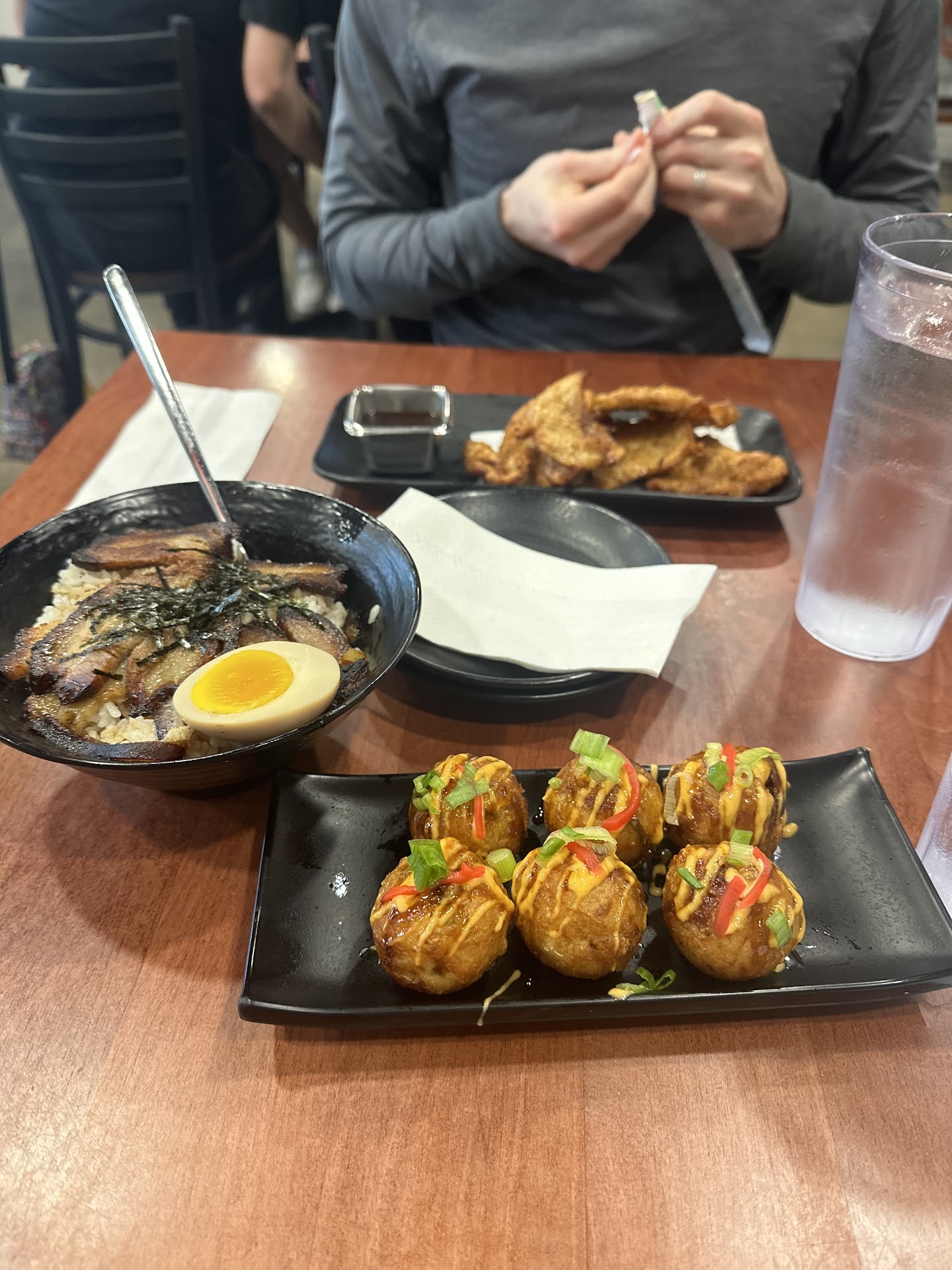 The place is nice and small and in my book that's not a negative. The service was good and it didn't take long to receive our order. We were feeling adventurous and tried the Tako-Yaki (Octopus Dumplings). Overall, the taste was decent, but I'm not a fan of ginger and the balls do have it in them. The insides seemed a little doughy and we weren't sure if that was supposed to be that way or not, but it wasn't horrible. I wouldn't get them again based off the ginger.