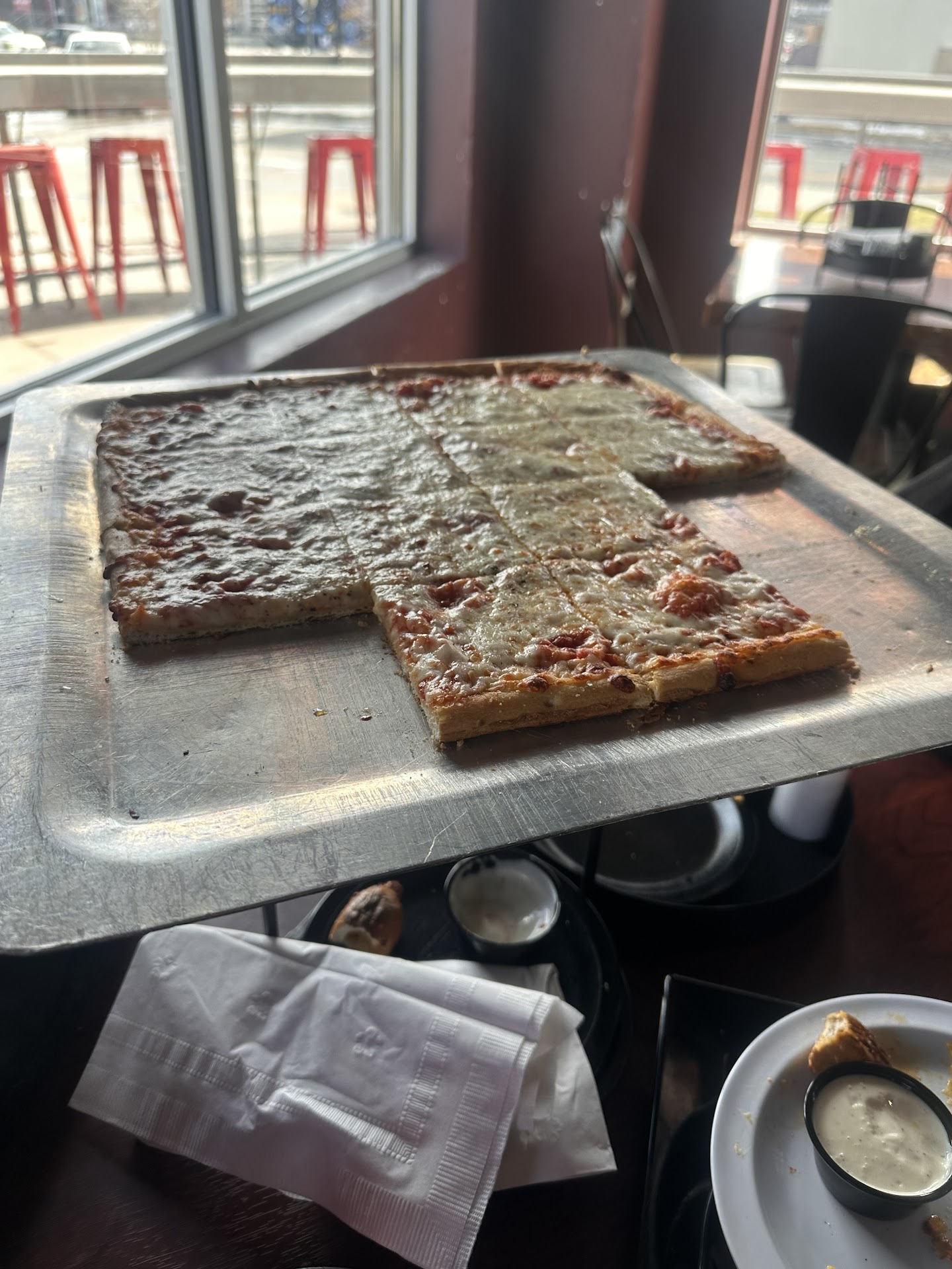 The issue is the pizza was so salty we only had half and took the rest to go. Salt is a flavor enhancer, and a appetite suppressor so a lot of places are jacking up the salt because of supplier inflation. I assume their ingredients arnt fresh made, is what it seems like. There is no reason to add salt, in any way to a pizza or into its ingredients. IF they were to cut the salt it could be a good pizza, for that pizza type.