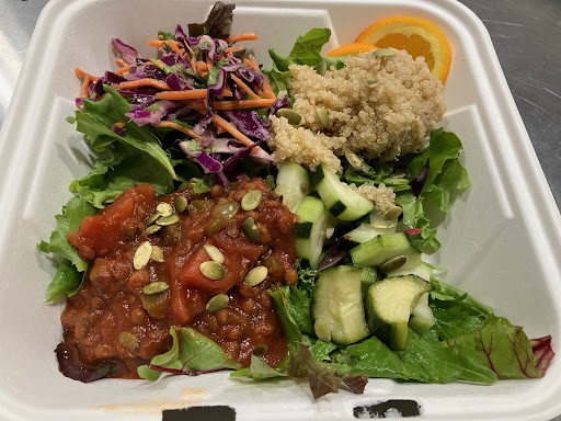 This was my first time going into Rooted Table Cafe. I told the lady helping me at register - Jen, that I was going to do a Google review and asked her to take some photos of the food I was ordering. I'm a power wheelchair user who has paralysis from the neck down and it's a little difficult for me to take pictures. Jen was more than willing to accommodate. It has been several weeks ago now that I was at this Cafe because I was waiting for it to be on Google to finish this review. The food I ordered was healthy vegan whole foods! It consisted of a lentil sloppy joe on some greens (spinach etc, not cheap zero nutrition iceberg lettuce). There was some pickled cucumbers that were my favorite! There was a side of cabbage slaw and a portion of perfectly cooked quinoa. I also ordered one of their healthy dessert bars that was satisfyingly full of unsweetened coconut! Personally, my priority for eating is for health & high nutrition while avoiding artificial flavors (which is basically edible perfume), added oils, and excessive sodium. Basically, I have retrained my taste palette to actually enjoy the type of whole foods offered in this Cafe! So if you want to eat green clean healthy foods with zero guilt, Rooted Table Cafe is where it is at! PS I also enjoyed a good conversation with one of the owners...
