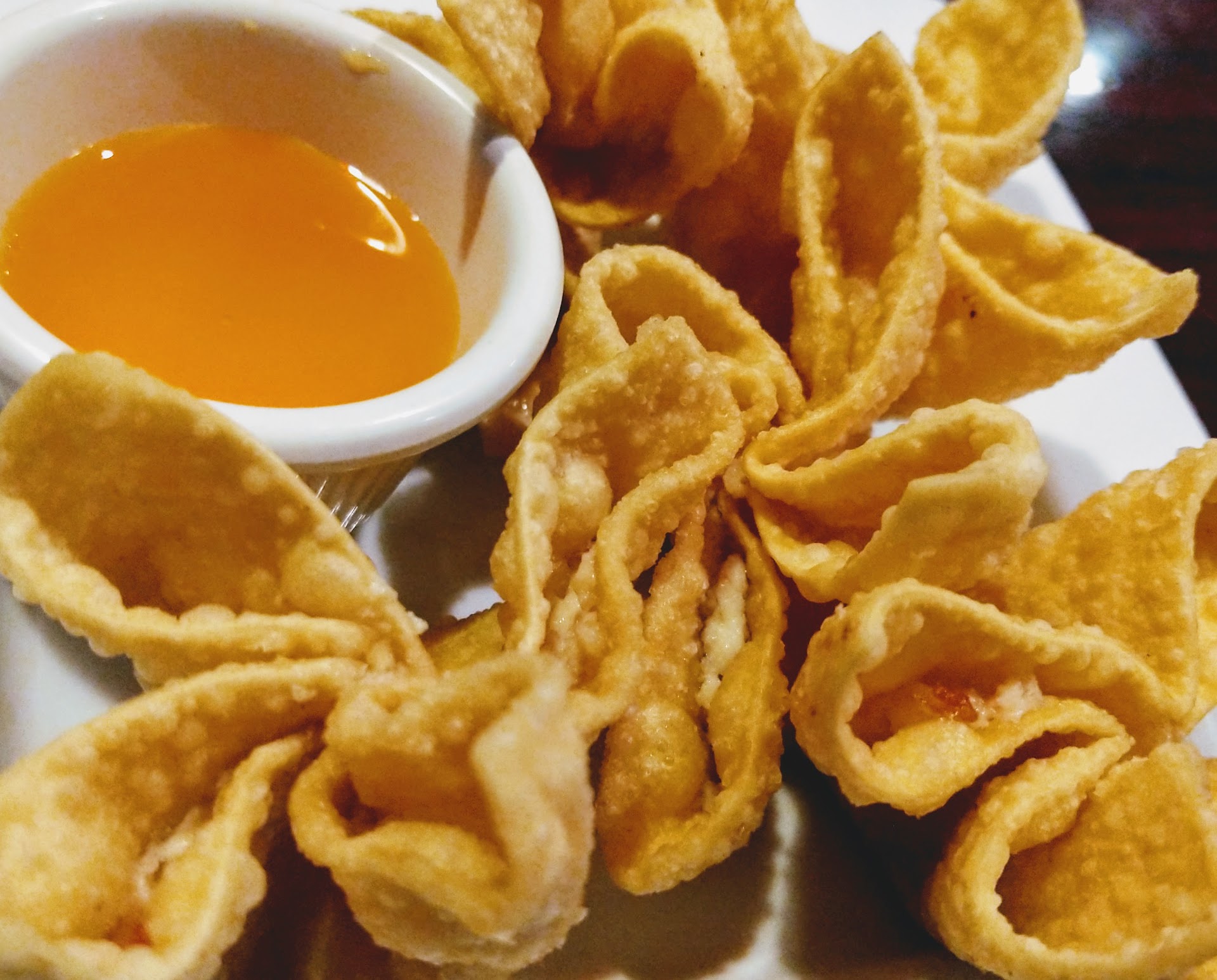 ⭐ Crab Rangoon - Next, every pan-Asian restaurant seem to carry a Crab Rangoon. It's a hit or miss and the recommendation here is to run away. Salween offers a sweety filling in wonton wrapping that isn't pinched in properly, and resulted in what felt like a ladle of kitchen grease with every bite. The sweetness was mimicking a dessert but those calories are better saved for the...