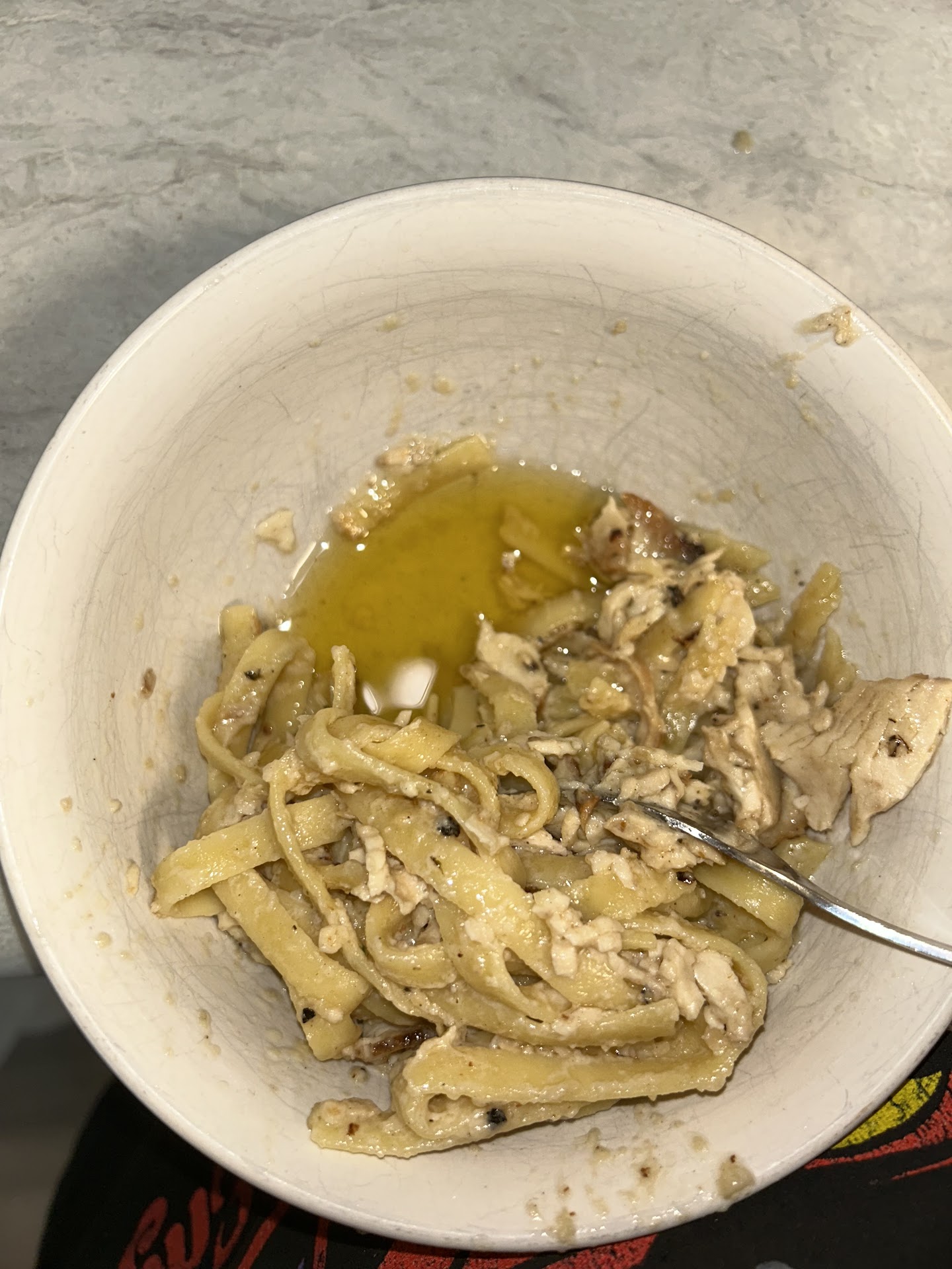Baked creamy chicken Alfredo....... Flavor to me is good, wife does not agree.. The chicken is shaved...... Why?...