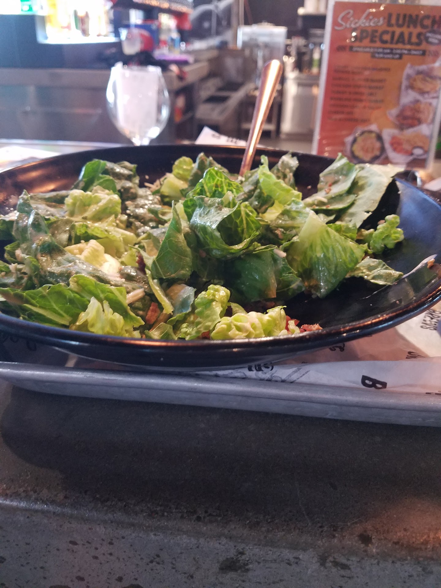 The worst part about this issue with the burgers is that their patties are obviously made in house, so they are not frozen pre-shaped patties. I can tell because mine was misshapen as was hers. This is actually a great advantage if the kitchen can live up to it, but the fact that I can get a juicier burger from McDonald's (who I KNOW uses frozen patties) is a sign Sickie's kitchen is not living up to their potential.