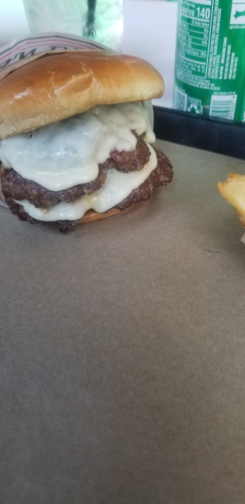 Well I had the taste for a burger today. Did a search and wanted to try this place in Blackstone. Welp it’s an absolute no 🙅🏽♀️for me. Burgers are expensive. Single 9.50 and doubles 5.50 extra. Burgers tasted like nothing, no flavor whatsoever. You can have it their way, meaning you can take off your burger but not add any extra to it. I don’t like that. Nice folks but I won’t be going back. To add bacon it was 1.75 and they were bacon bits....