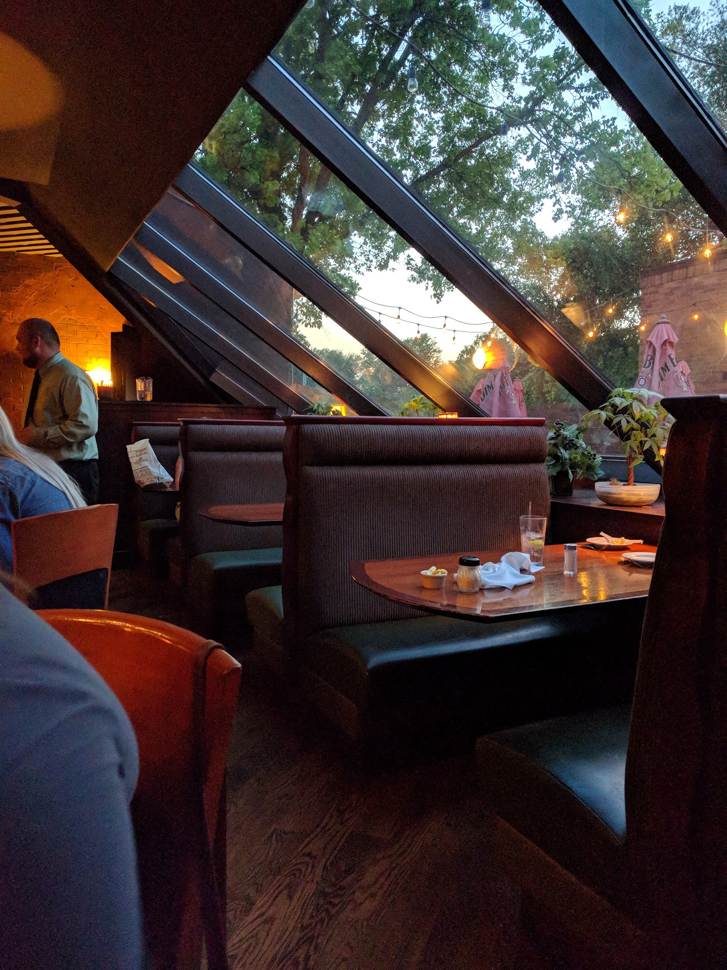The ambience was beautiful, especially after a day of rain. The cloudy sky cast a dim, moody light through the large, slanted windows above the booths facing the patio. That, along with abundance of table lamps and candlelight made for a cozy, relaxing dinner.