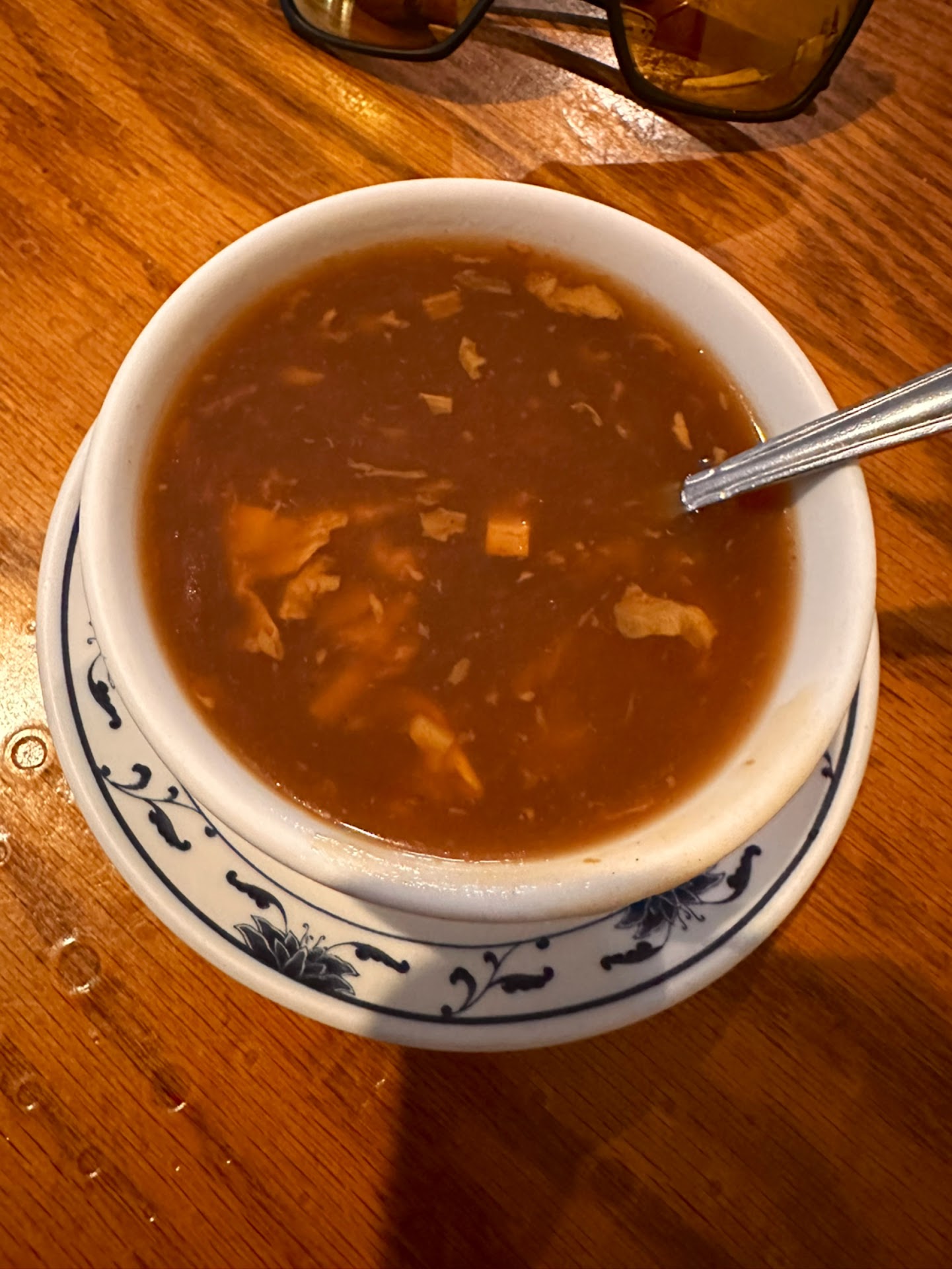 Read moreThis used to be my go-to place for Chinese food but I hadn't been there for many years. So I was really happy that it hadn't changed much. The restaurant is nice and they also do takeout. A lunch entree is around $8.50 and for that you get soup and 2 crab rangoons in addition to your meal. That's a fantastic deal!! Their menu is extensive and pretty similar to other Chinese restaurants in Omaha in that they have chicken dishes, pork dishes, vegetarian dishes, etc. I highly recommend the hot & sour soup. Their egg rolls are excellent. I always have a chicken dish and have never been disappointed. They are also very nice about substitutions which is helpful. Now that 114th Street is open again, I'll be back here more...