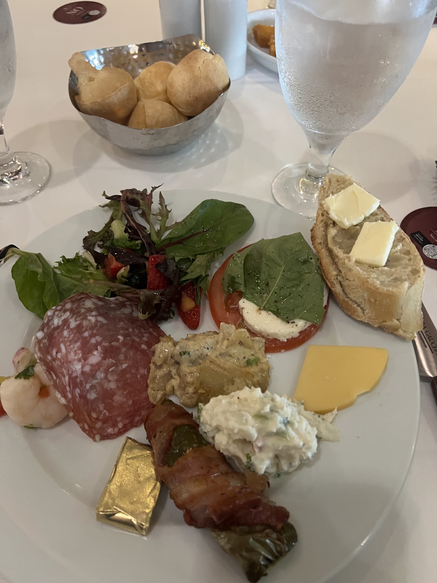 My photo is from my excursion to the salad bar -- with only a smattering of the offerings available on my plate (I wanted to be sure I had room for the main event -- the meat...