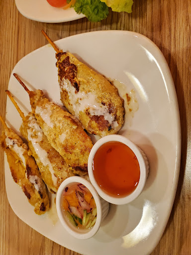 Appetizers - Chicken satey with peanut sauce , they have a new peanut sauce and damn its good better then the old recipe.