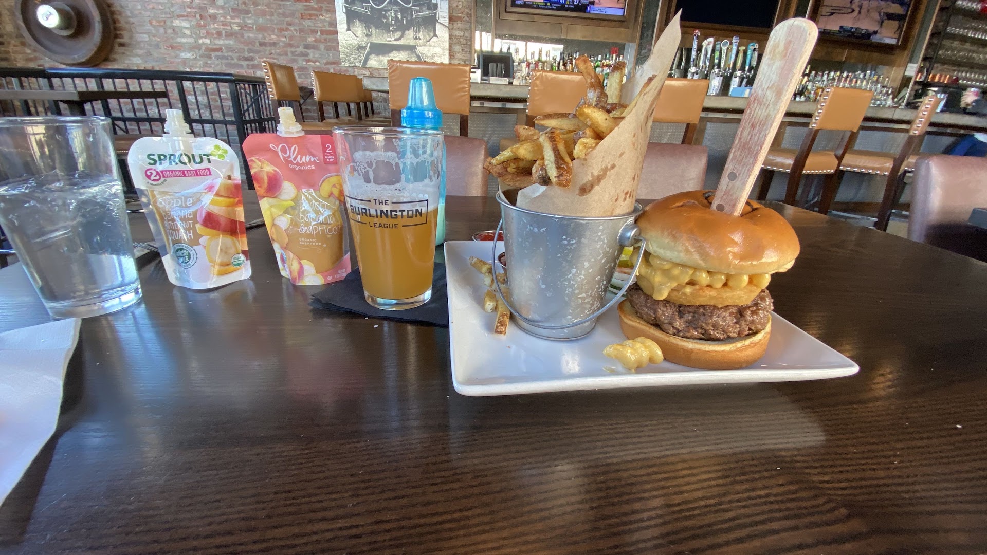 Read moreI asked for a medium burger and it was well done and burnt like a meatloaf. I ordered the Mac and cheese burger and expected the overflow one we see in the pics here, instead it was a nuked but we with a scoop of semi warm Mac and cheese. There was only three tables. The bartender did a good job chatting people up, grabbing my beer, and taking care of myself and my son. Somehow the chef in back was incredibly slow still, wich may have been my nuked burger.