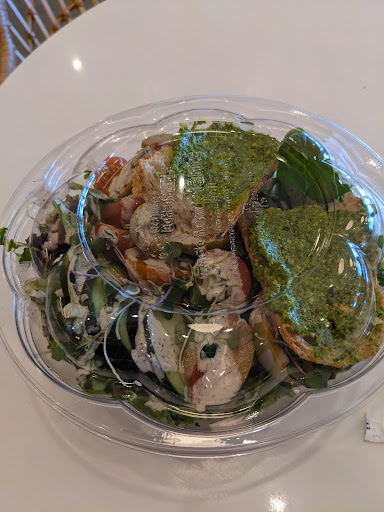 First and foremost the atmospheres extraordinarily relaxing and laid back, perfect for quiet conversations or studying or a good book. They have an array of organic and health conscious products as well as merch in the forms of energy and wellness chews, mushroom-based protein powders and then some, and more. Everything was very clean and I could barely find a speck of dust. This is pretty rare for a store with so much out on display and for purchase. The trash and recycling is separated and you are expected to put your dirty dishes away they do not bust tables. Hubby said that his sandwich was like grown up peanut butter and jelly with bananas. It's nothing to write home about, but it was simple and tasty . My salad was an interesting blend of microgreens and tzatziki sauce, some big cut queen olives,, pesto and a good bread. But I felt like it would benefit from chicken or another big heavy protein. The seeds are a nice touch but it's missing something savory. Decent salad, maybe like a 6 out of 10 I would probably buy it again but I would add chicken if I could. Easy to drink but it's nothing to write home about.