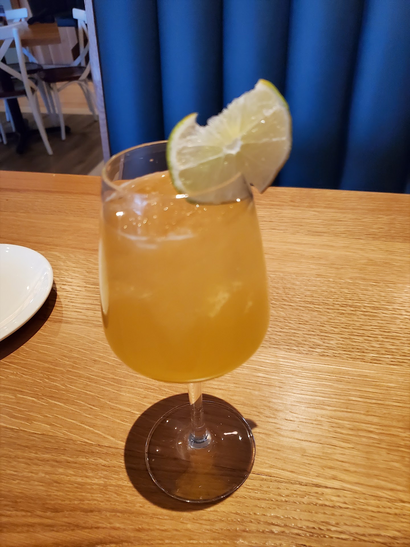 I went in around 5pm, so I got to enjoy the happy hour menu for drinks and snacks. I got the pineapple peach sangria and also tried the same as a Southern Soda. Both were very good, but that honey wine they put in the sangria just put it over the top. Soooo good.