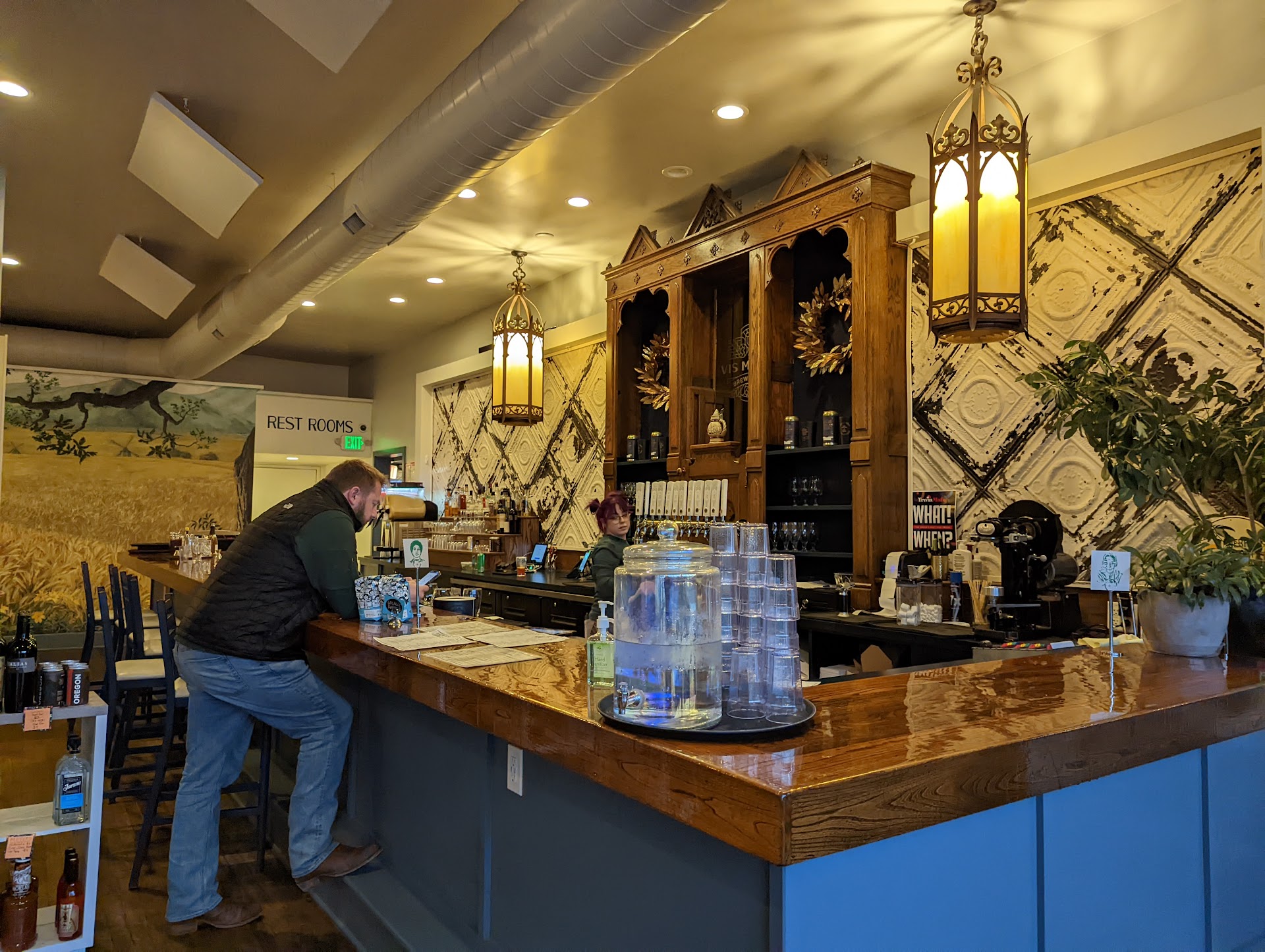 Read moreClearly a lot a time and expense went into decorating this beautiful bar, with Catholic Church style overhead lights, beautiful mural, and pressed tin wall décor adding a classy tone. Unfortunately, the beer was terrible. Neither the porter or stout listed on the website were available, but a blood orange ale was nice—tart, light, with a quick finish. We sampled 5 beers, but none were remarkable. The Octoberfest was undrinkable and tasted like soap. Service was…shall we say… abrasive? After our first round of tastings, we gave up on food or more drinks, and just cashed out. They were not busy, were uninterested in customer service, and served below average beer. I was really looking forward to liking this place, as it is along the Field Club Trail....